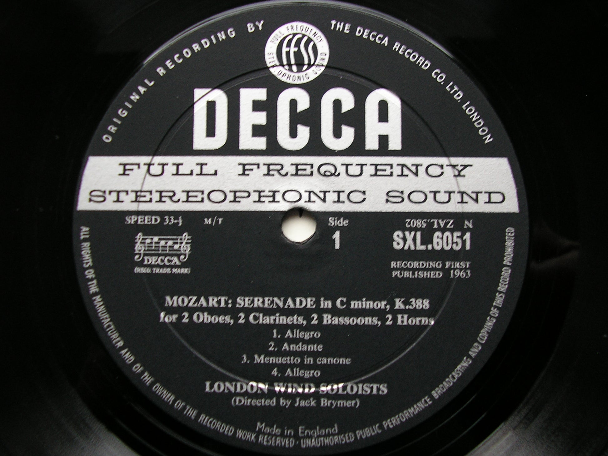 SXL 6051 MOZART: COMPLETE WIND MUSIC Volume 2 BRYMER / LONDON WIND SOLOISTS ED1