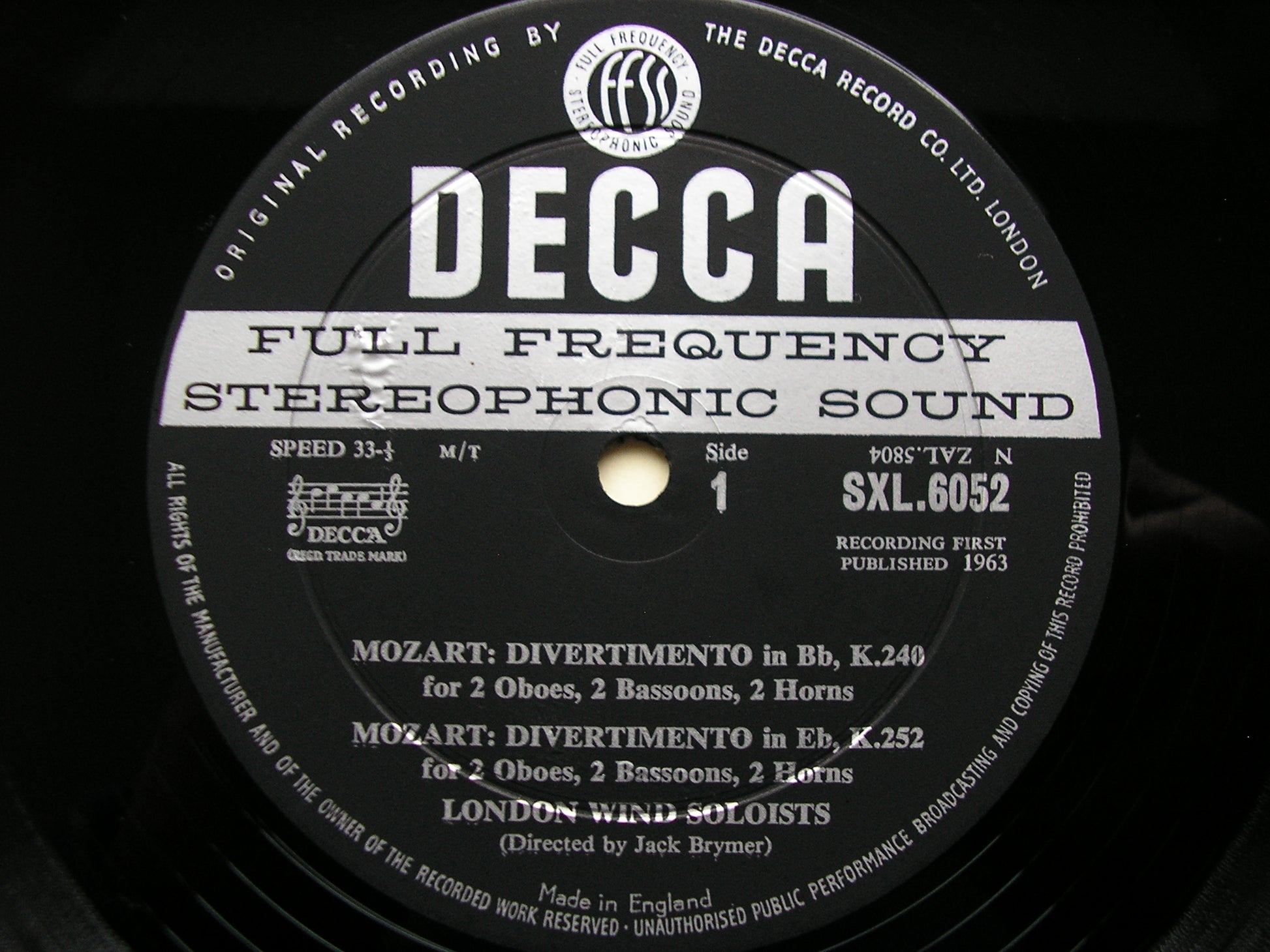 SXL 6052 MOZART: COMPLETE WIND MUSIC Volume 4      JACK BRYMER / LONDON WIND SOLOISTS