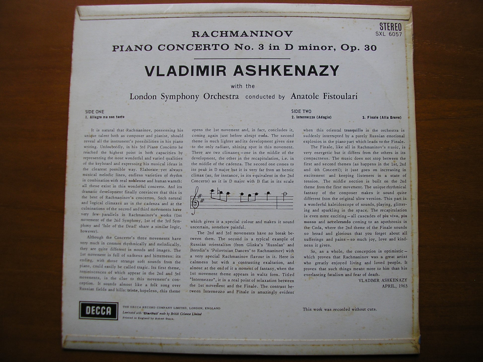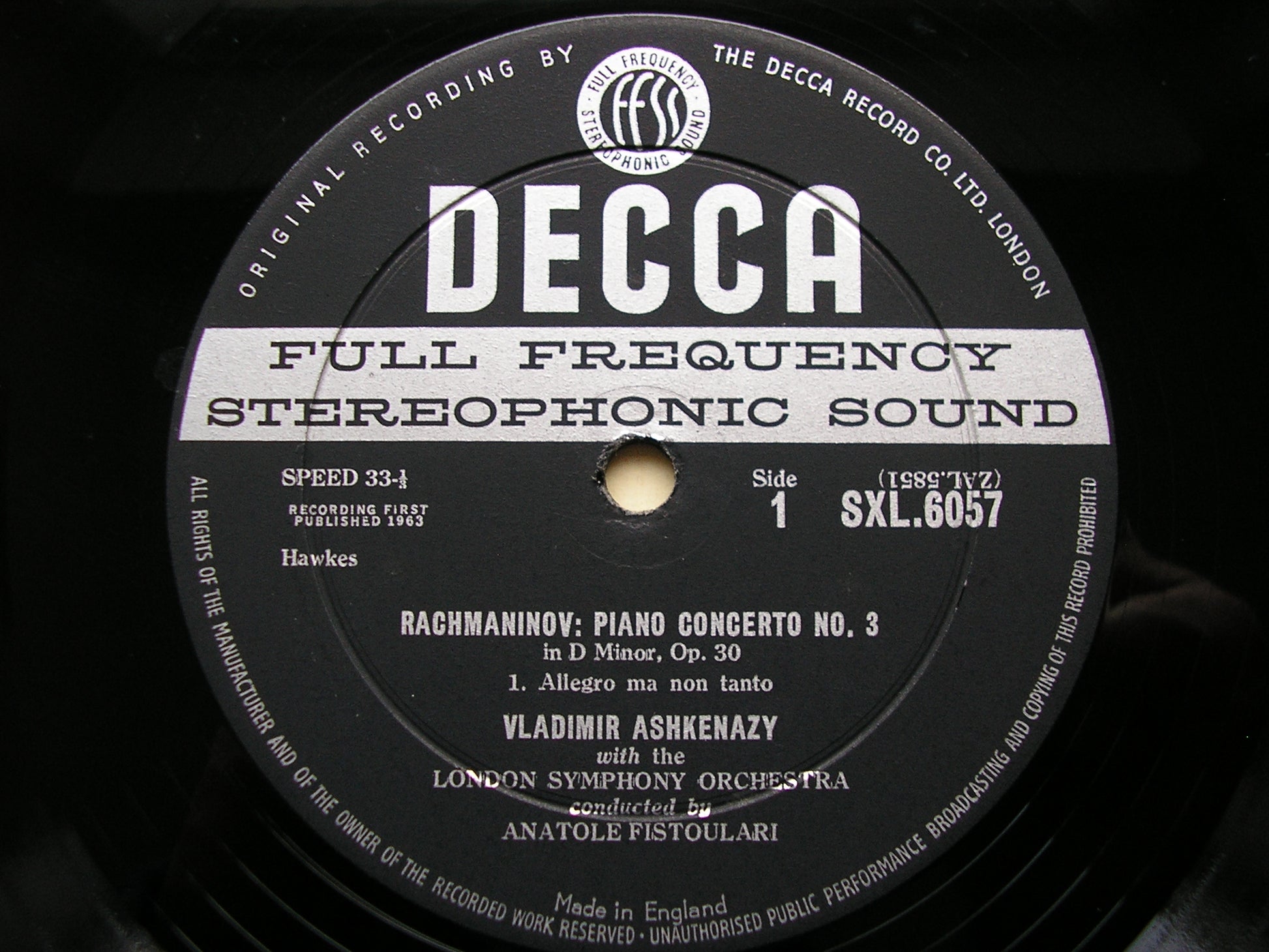 SXL 6057 RACHMANINOV: PIANO CONCERTO No. 3      VLADIMIR ASHKENAZY / LONDON SYMPHONY ORCHESTRA / ANATOLE FISTOULARI