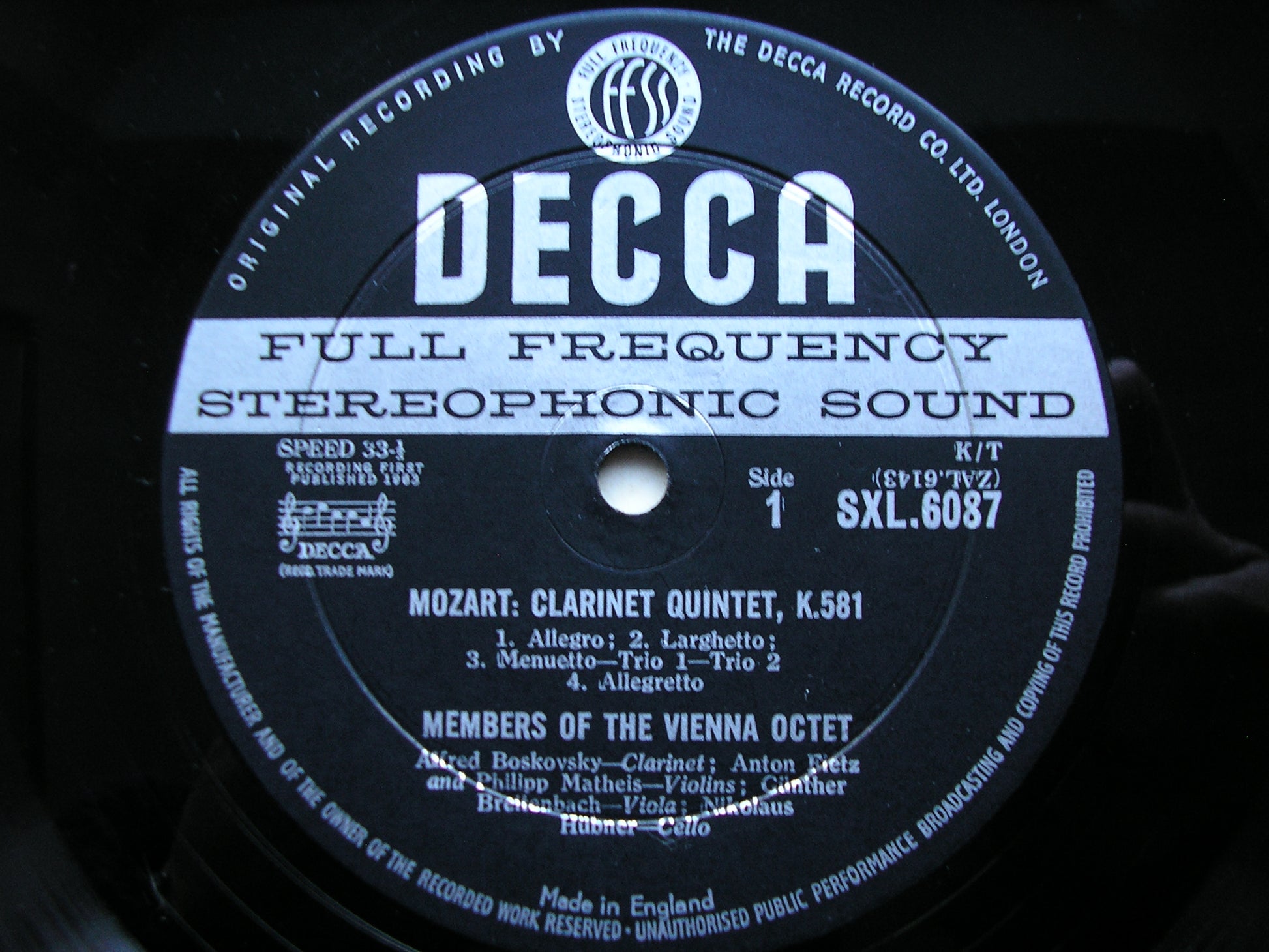 SXL 6087 MOZART: CLARINET QUINTET K581 / DIVERTIMENTO K247 BOSKOVSKY / VIENNA OCTET ED1