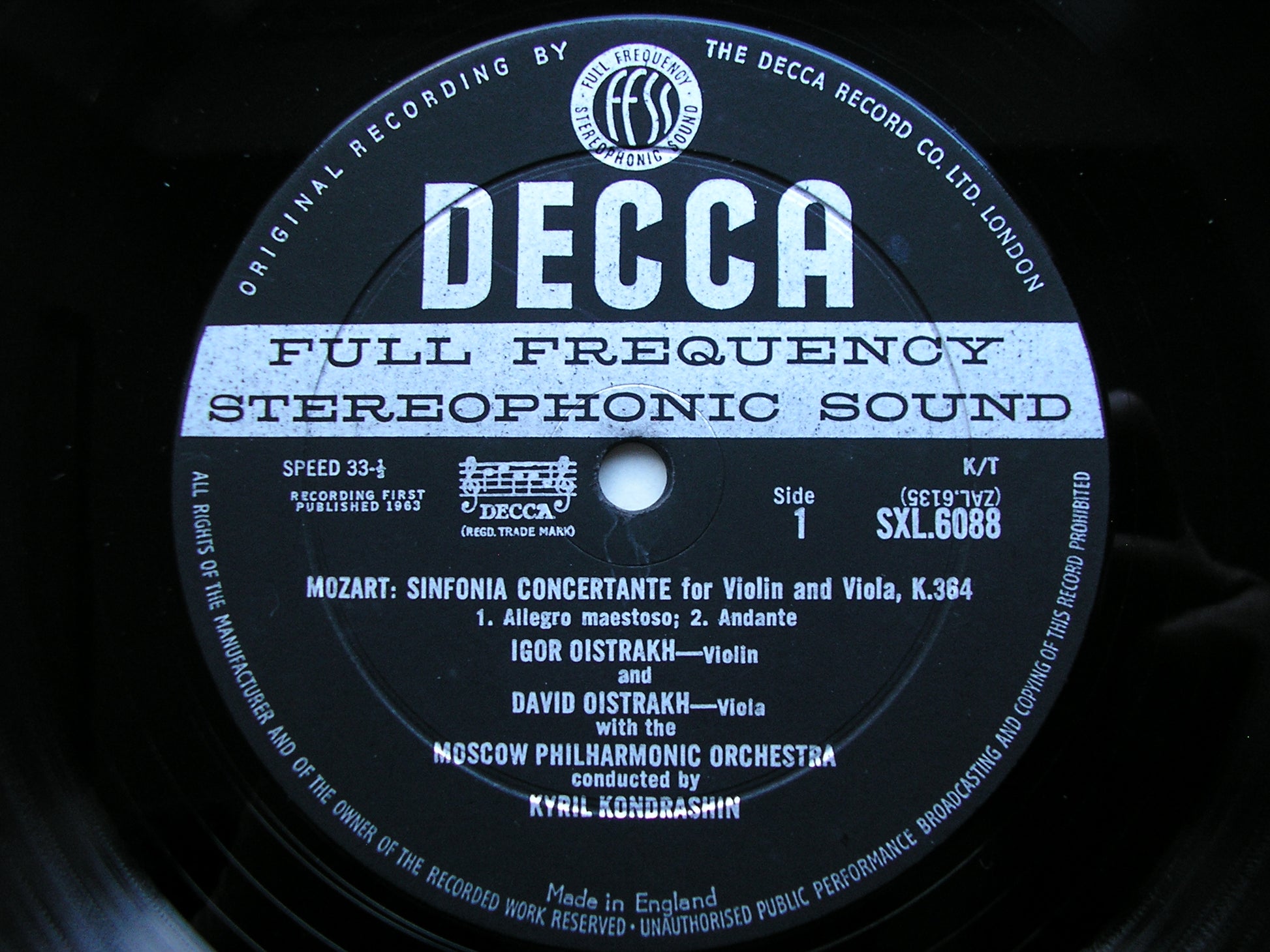 SXL 6088 MOZART: SINFONIA CONCERTANTE / DUO DAVID & IGOR OISTRAKH / MOSCOW PHILHARMONIC / KONDRASHIN ED1