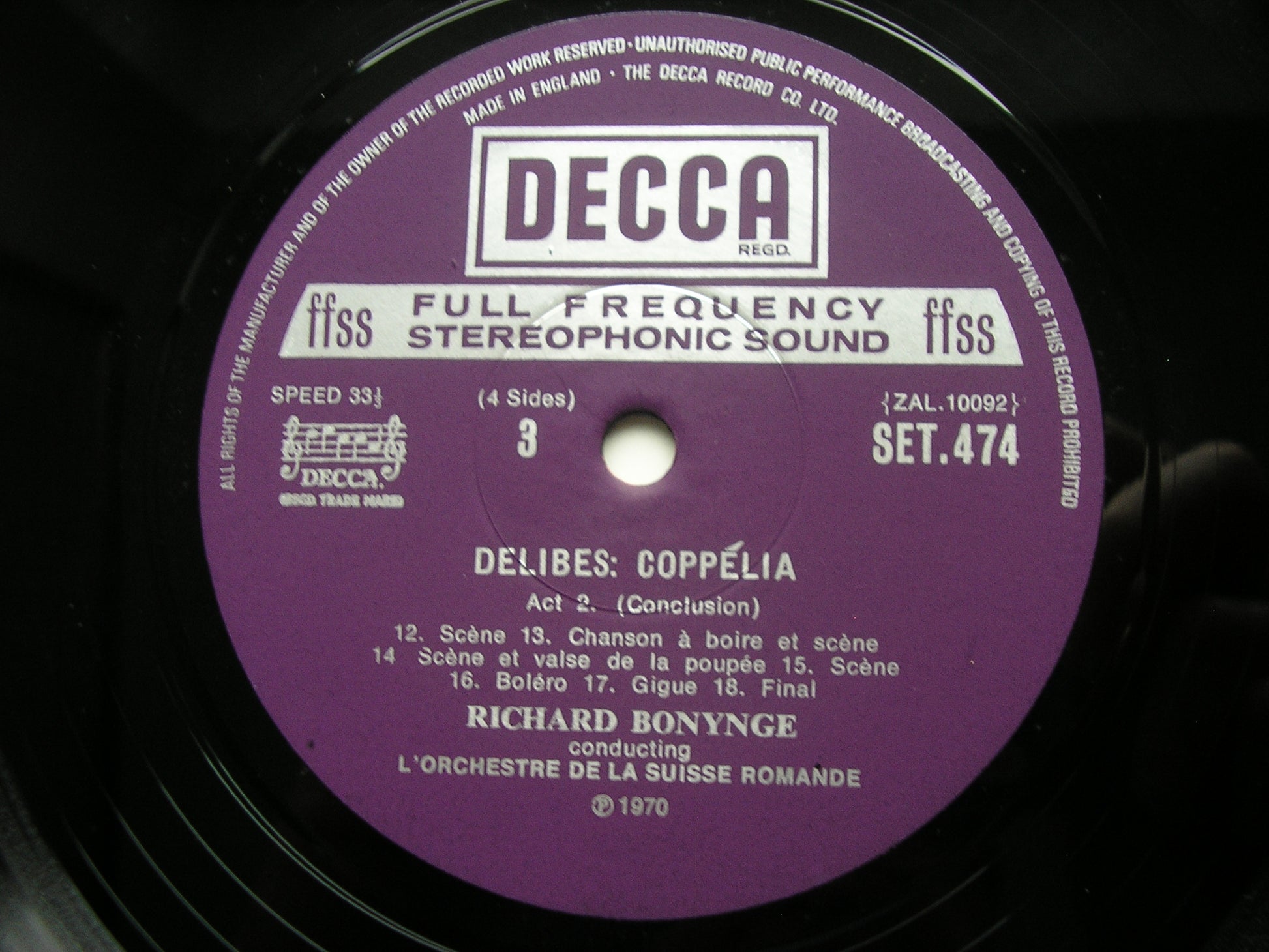 SET 473 / 4  DELIBES: COPPELIA      RICHARD BONYNGE / SUISSE ROMANDE ORCHESTRA