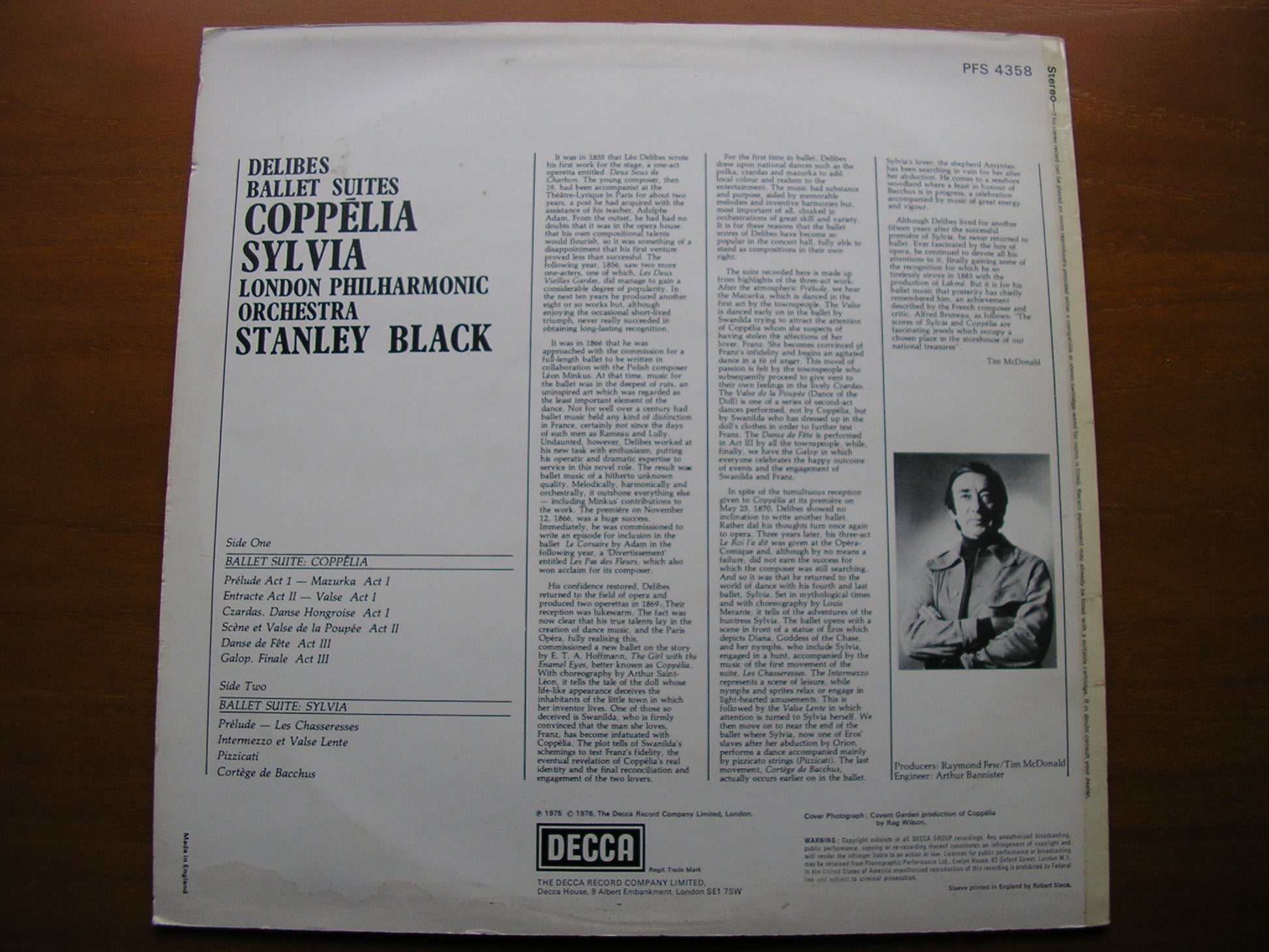 PFS 4358  DELIBES: COPPELIA Suite / SYLVIA Suite      STANLEY BLACK / LONDON PHILHARMONIC ORCHESTRA