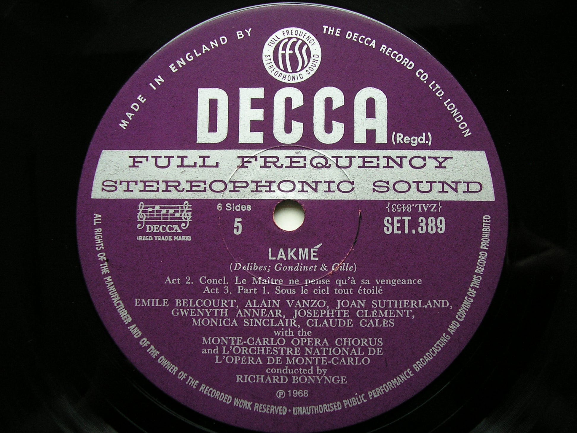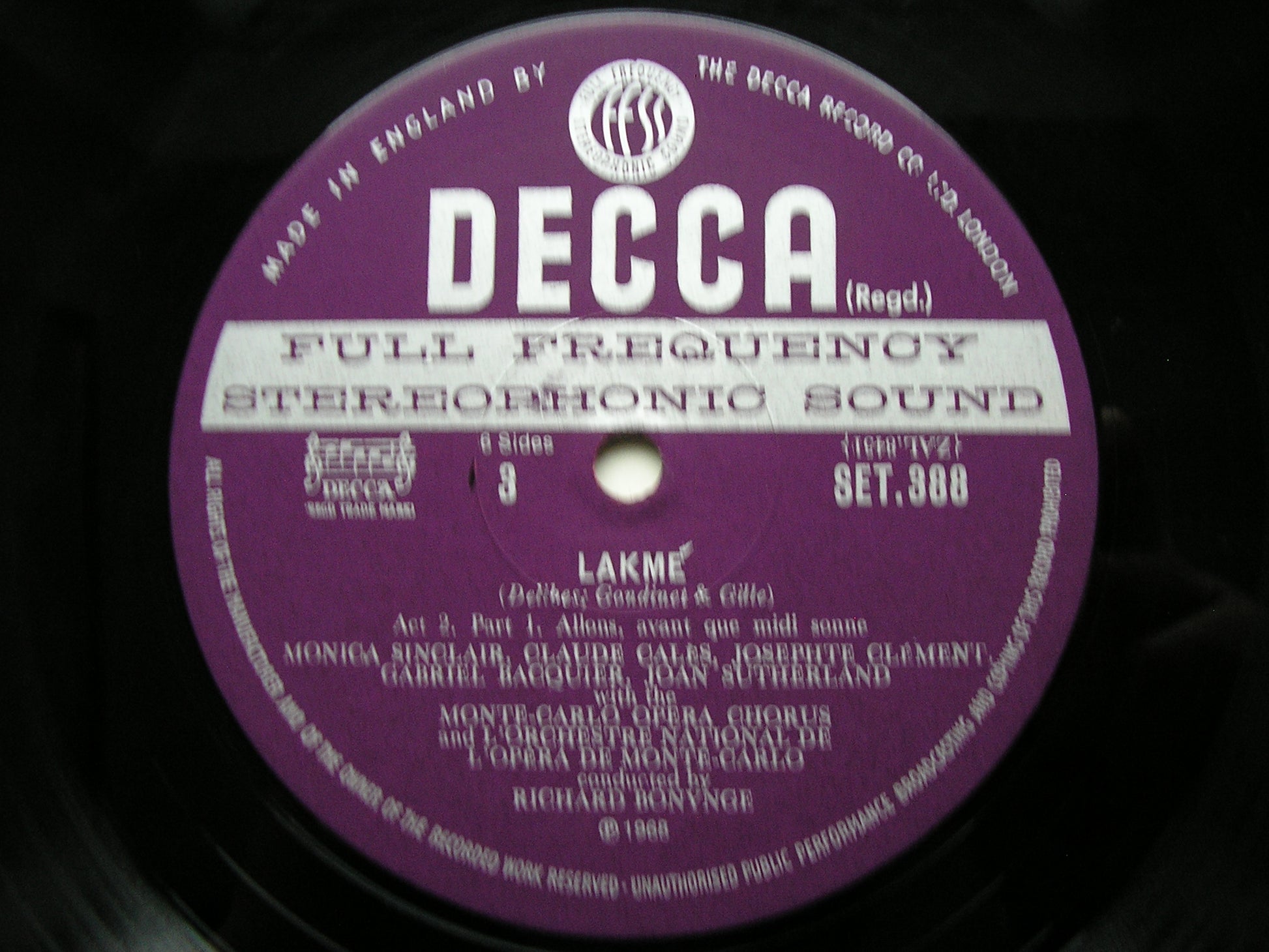 DELIBES: LAKME - SUTHERLAND / VANZO / BACQUIER / MONTE CARLO OPERA / RICHARD BONYNGE SET 387 - 9