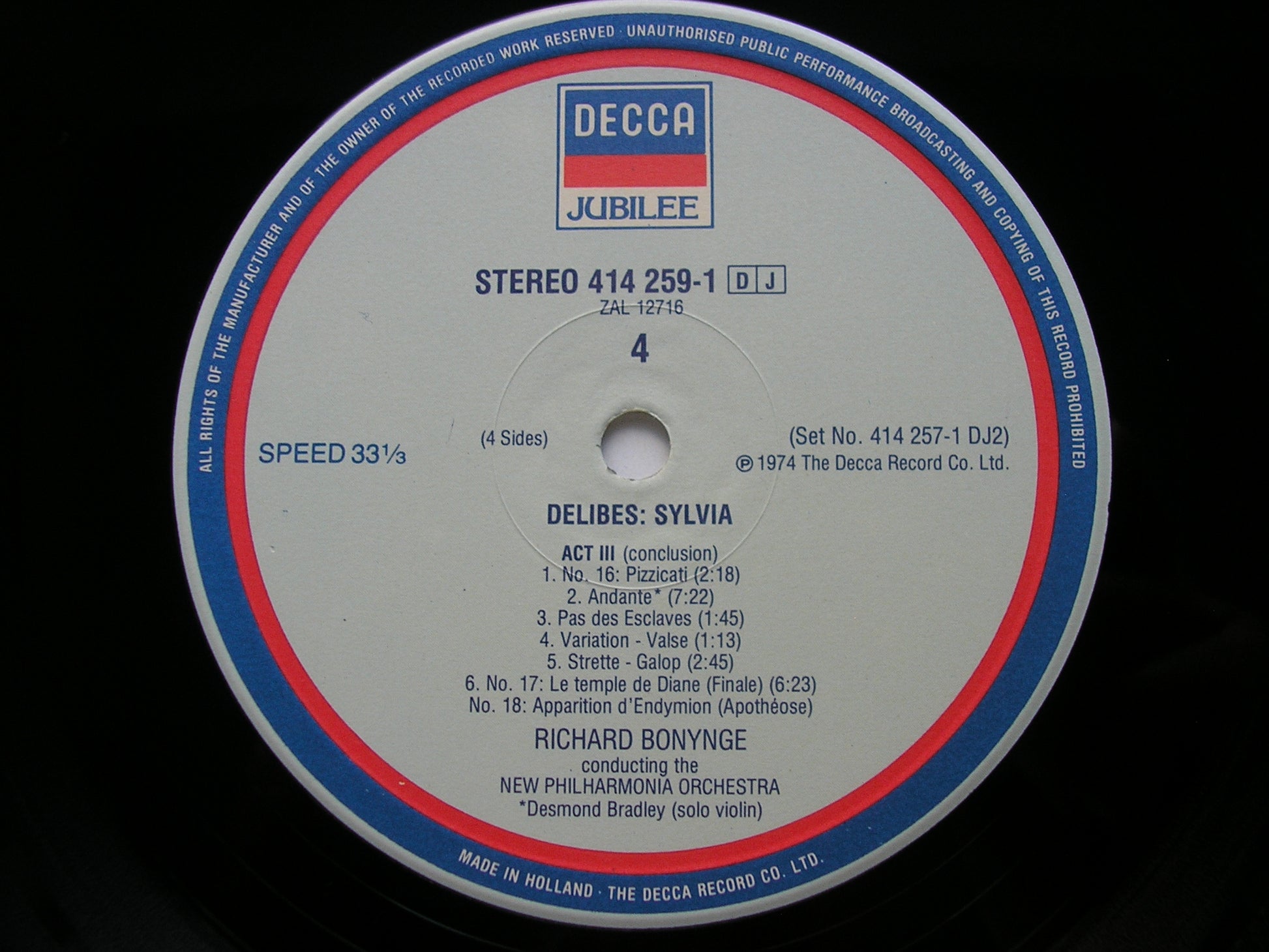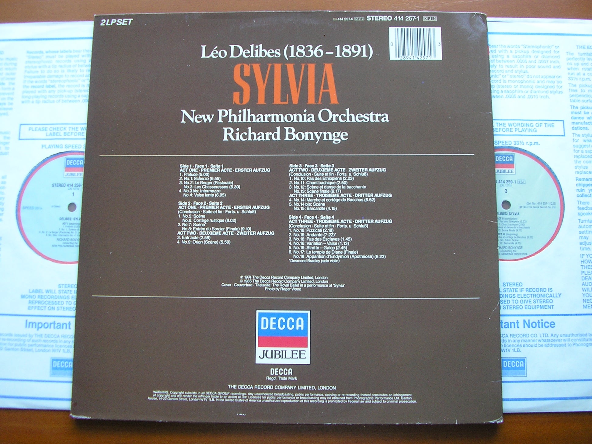 414 257  DELIBES: SYLVIA     RICHARD BONYNGE / NEW PHILHARMONIA ORCHESTRA