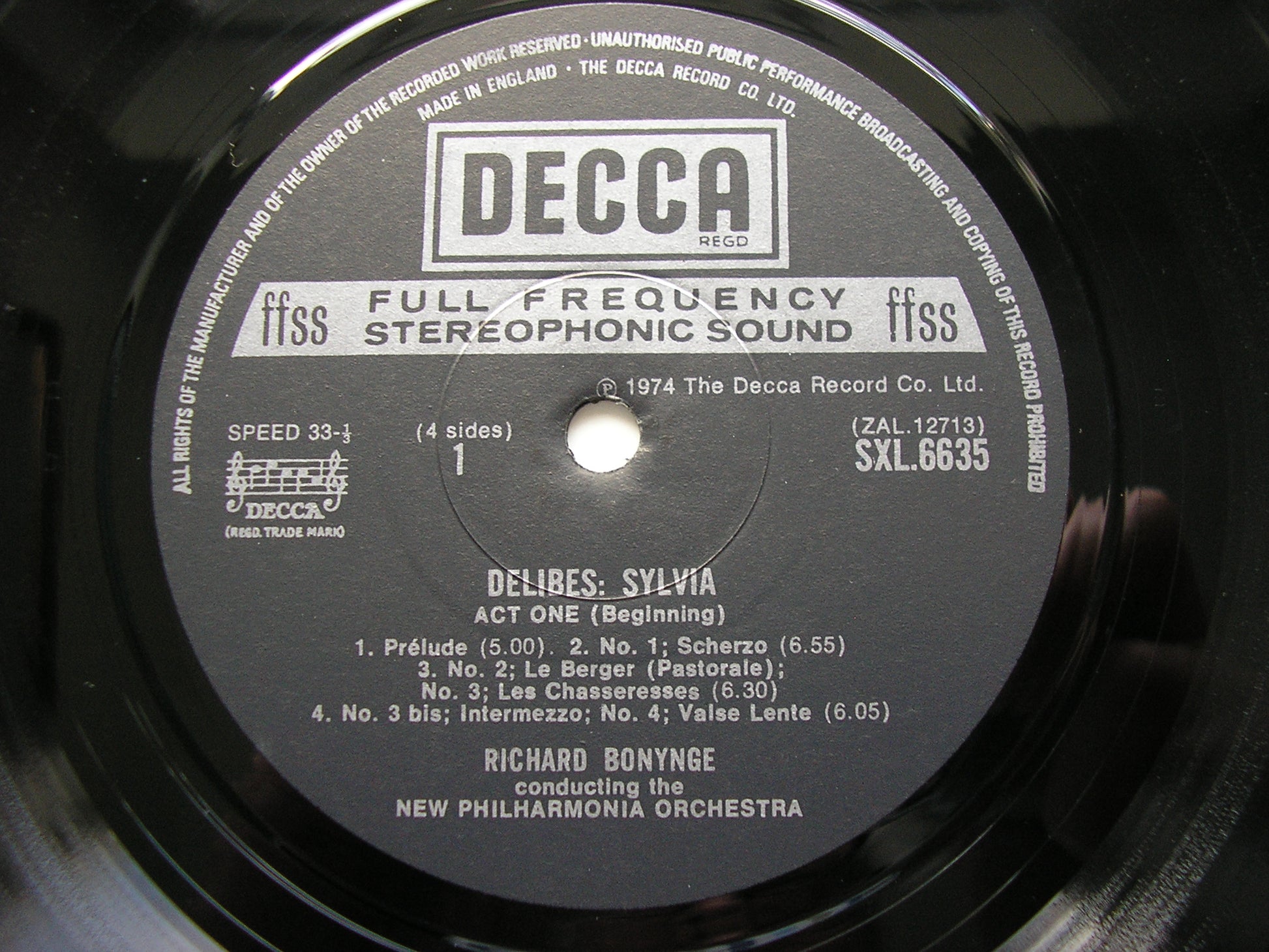 SXL 6635 - 6 DELIBES: SYLVIA (Complete Ballet) RICHARD BONYNGE / NEW PHILHARMONIA ORCHESTRA
