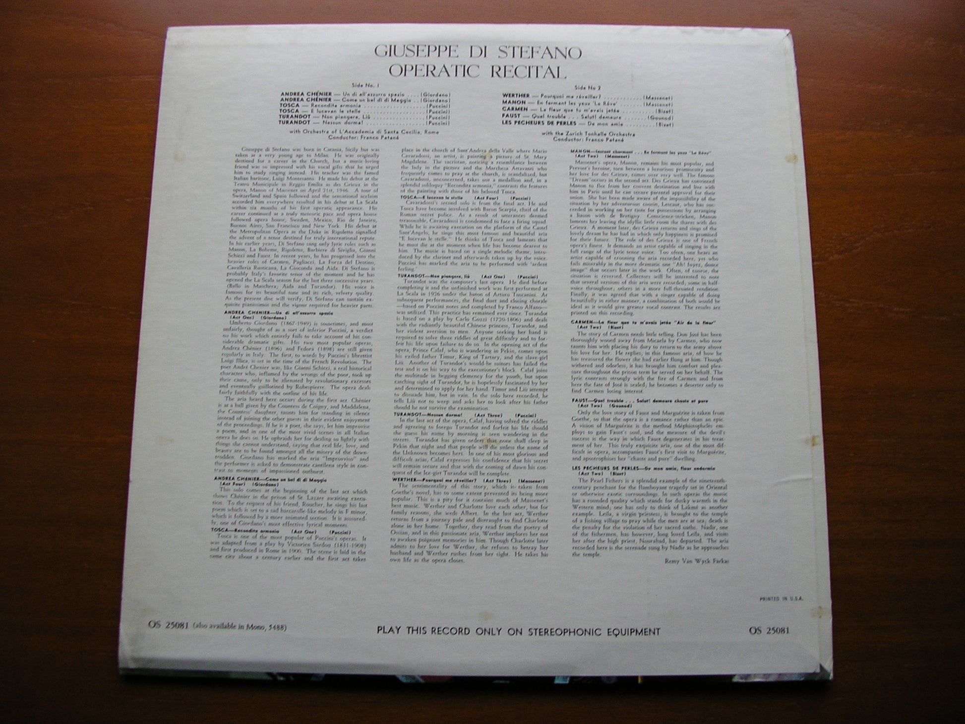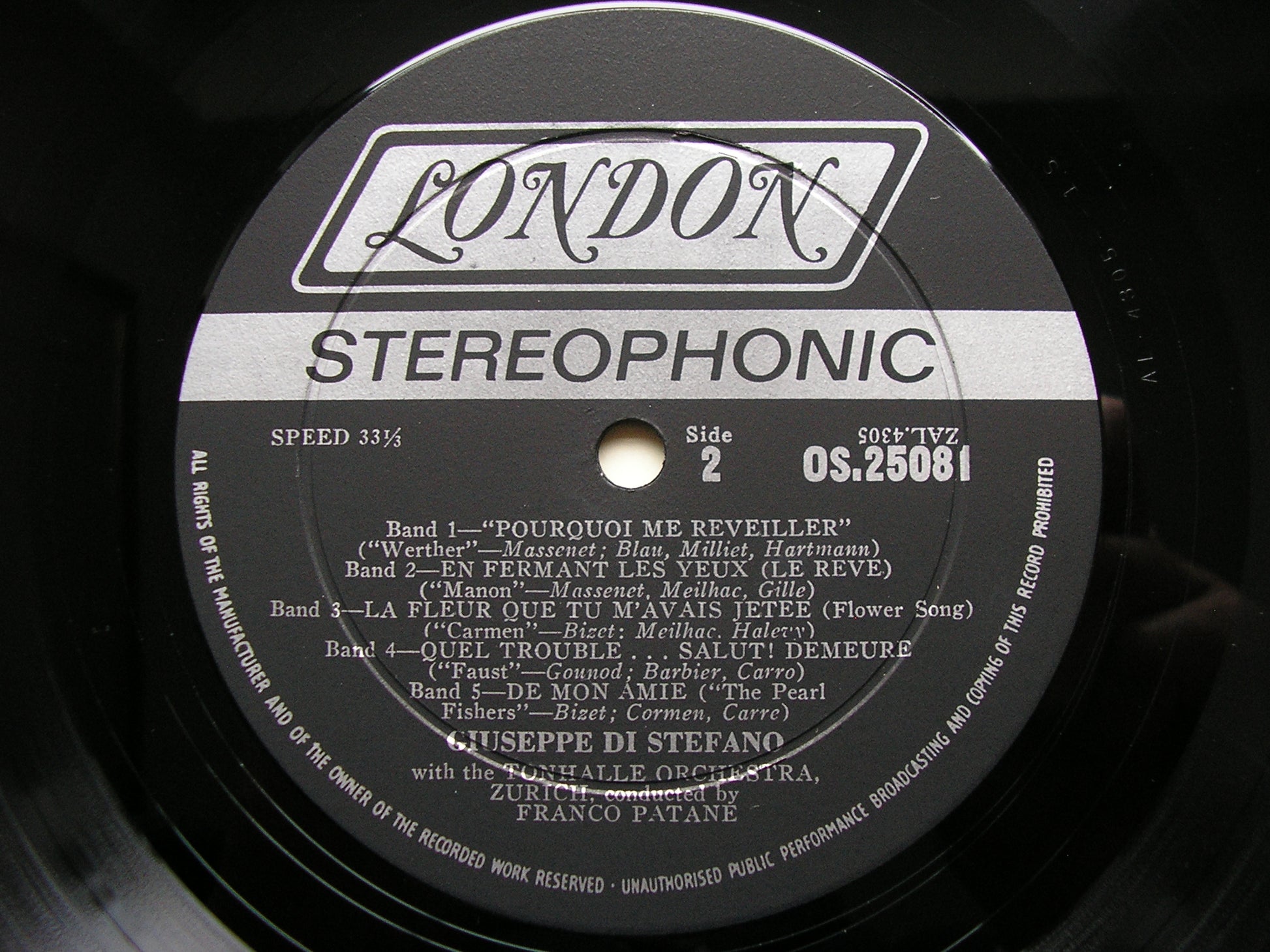 DI STEFANO SINGS OPERATIC ARIAS: MASSENET / GOUNOD / PUCCINI / BIZET / GIORDANO ACCADEMIA di SANTA CECILIA / PATANE OS 25081