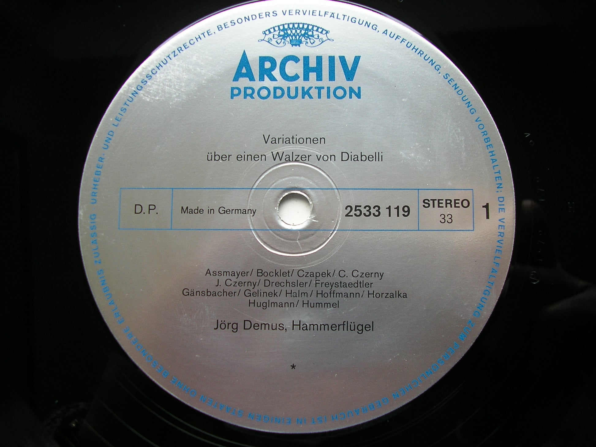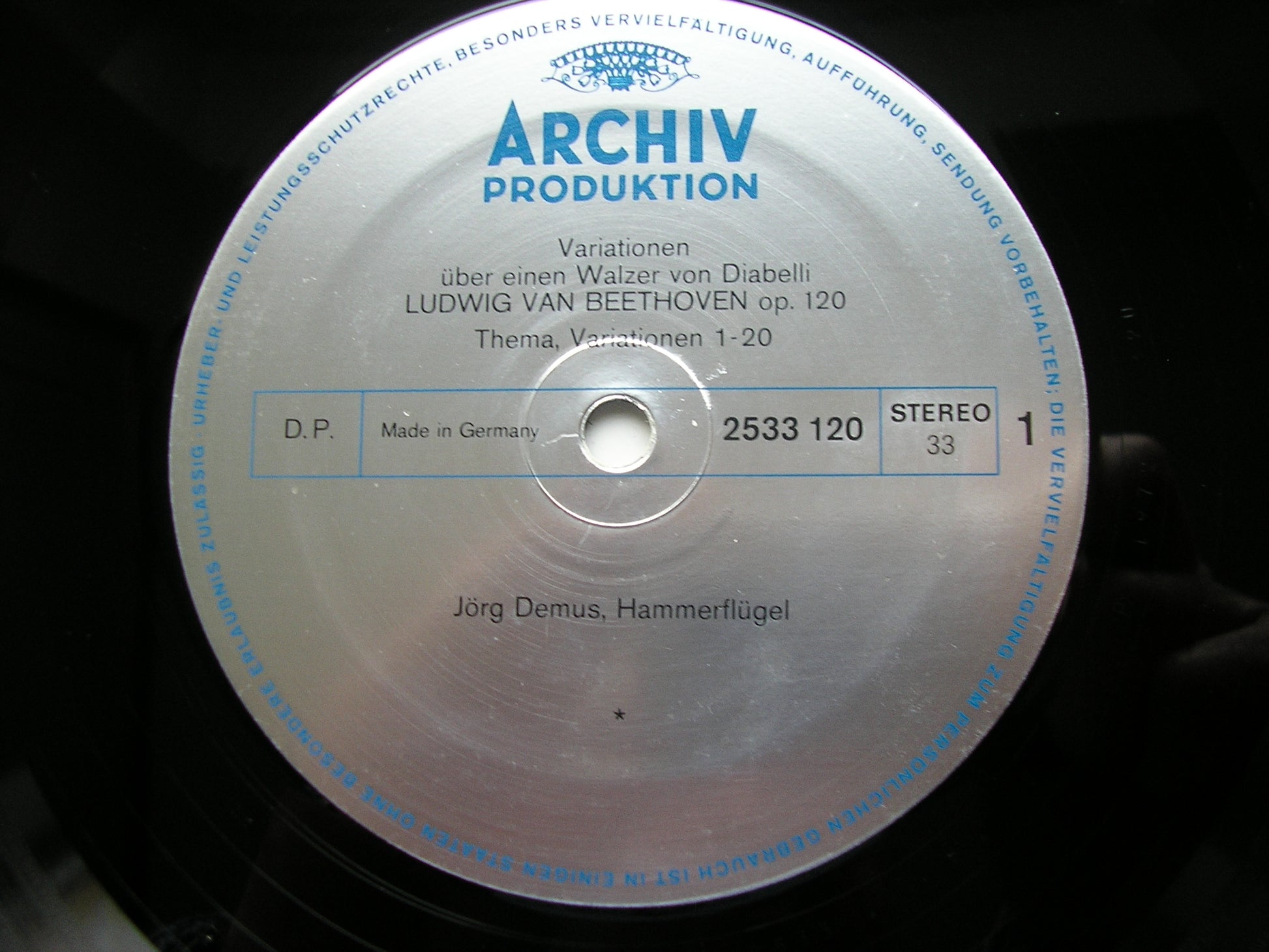 Jorg Demus plays the variations on 3 different instruments, an 1802 Grand hammerklavier by Broadwood, a Grand hammerklavier circa 1815 - 1825 by Grober and another constructed by Graf in 1839.