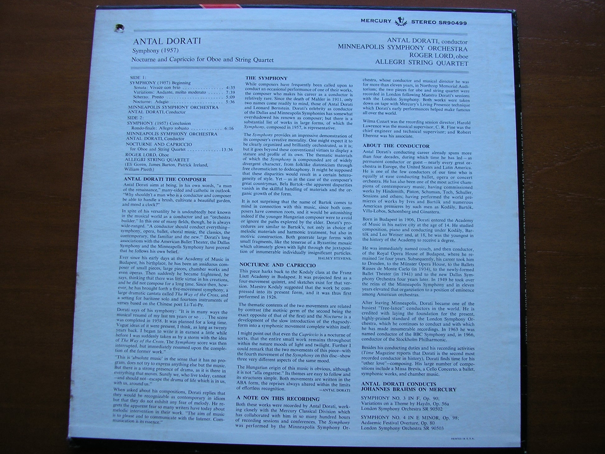 SR 90499  DORATI: SYMPHONY (1957) / NOCTURNE & CAPRICCIO FOR OBOE & STRING QUARTET    ROGER LORD / ALLEGRI STRING QUARTET / ANTAL DORATI / MINNEAPOLIS SYMPHONY ORCHESTRA