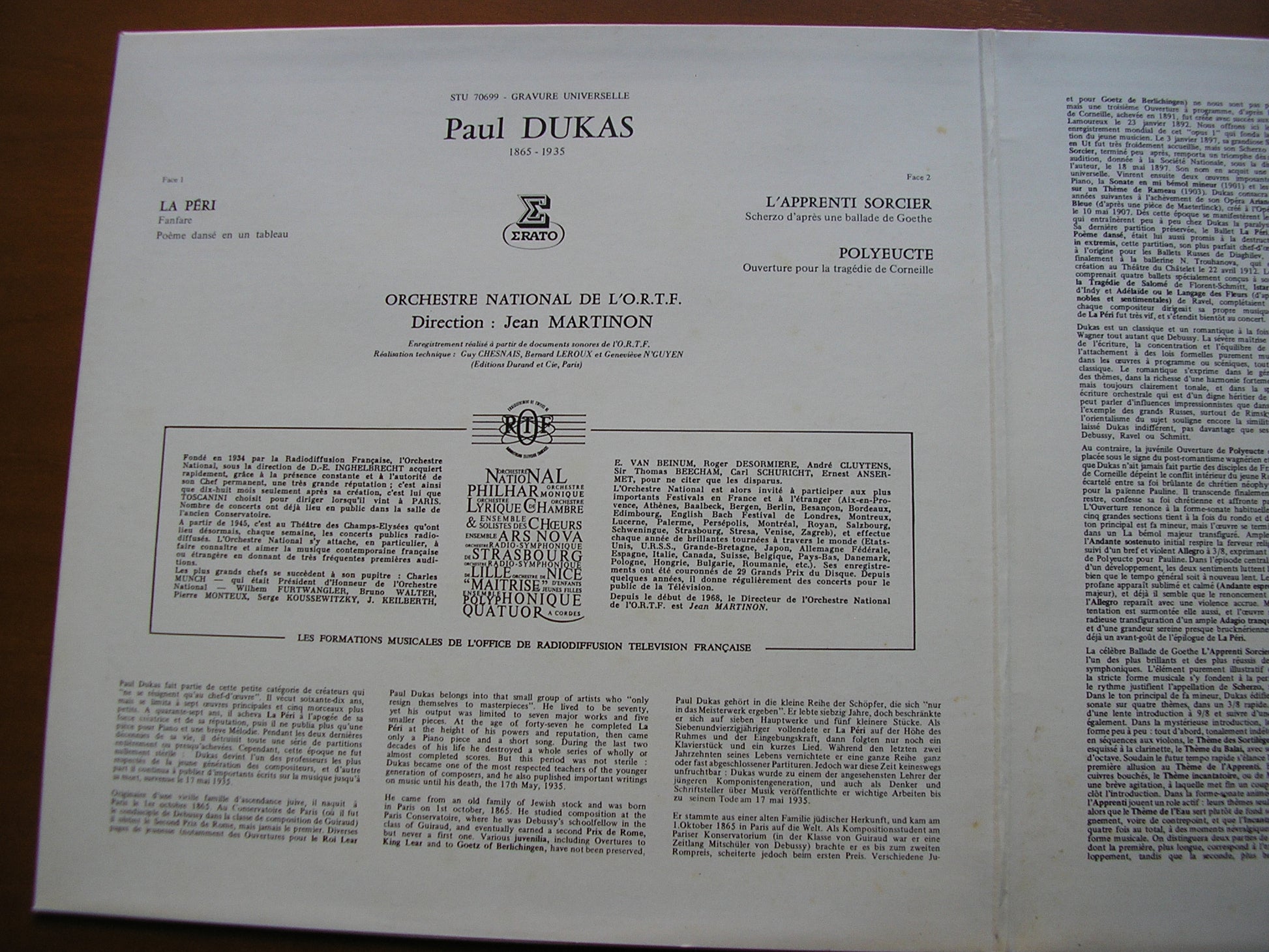 DUKAS: LA PERI / L'APPRENTI SORCIER / POLYEUCTE MARTINON / FRENCH NATIONAL RADIO ORCHESTRA STU 70699