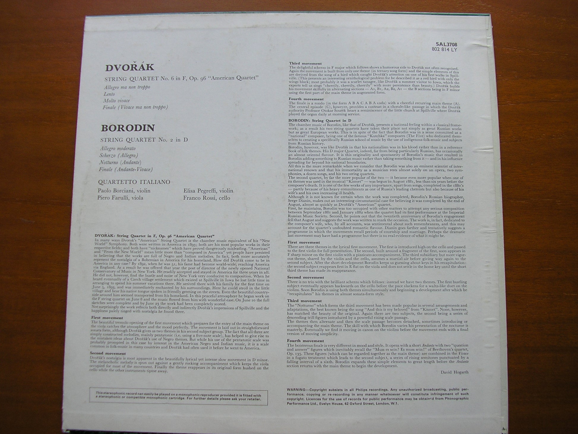 SAL 3708  DVORAK: STRING QUARTET Op. 96 / BORODIN: STRING QUARTET No. 2     QUARTETTO ITALIANO