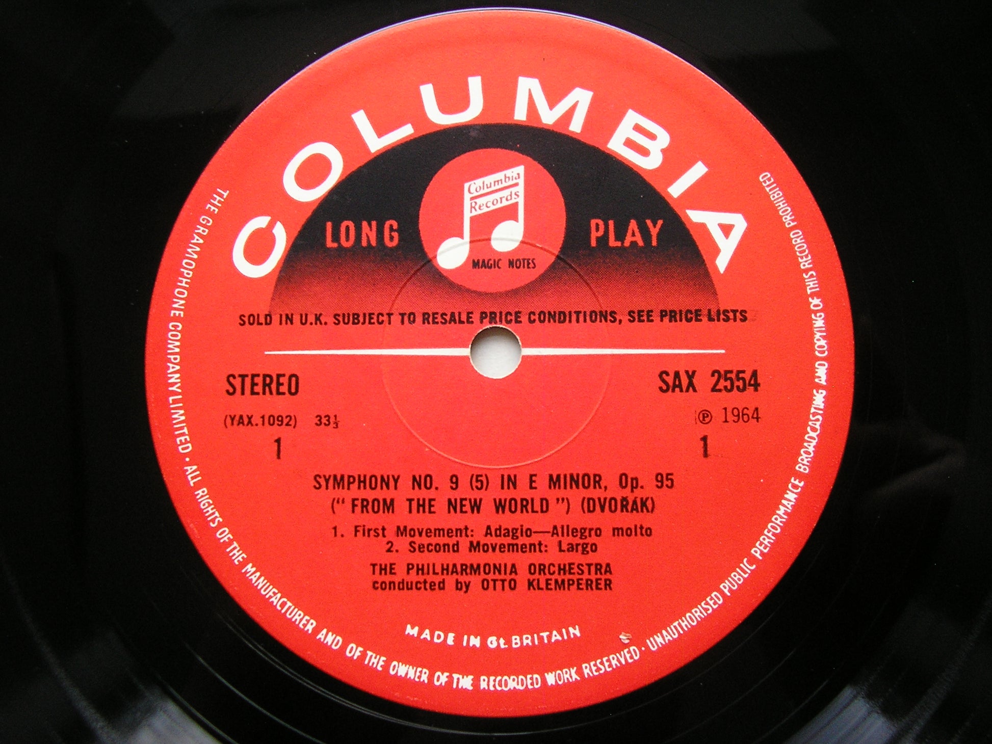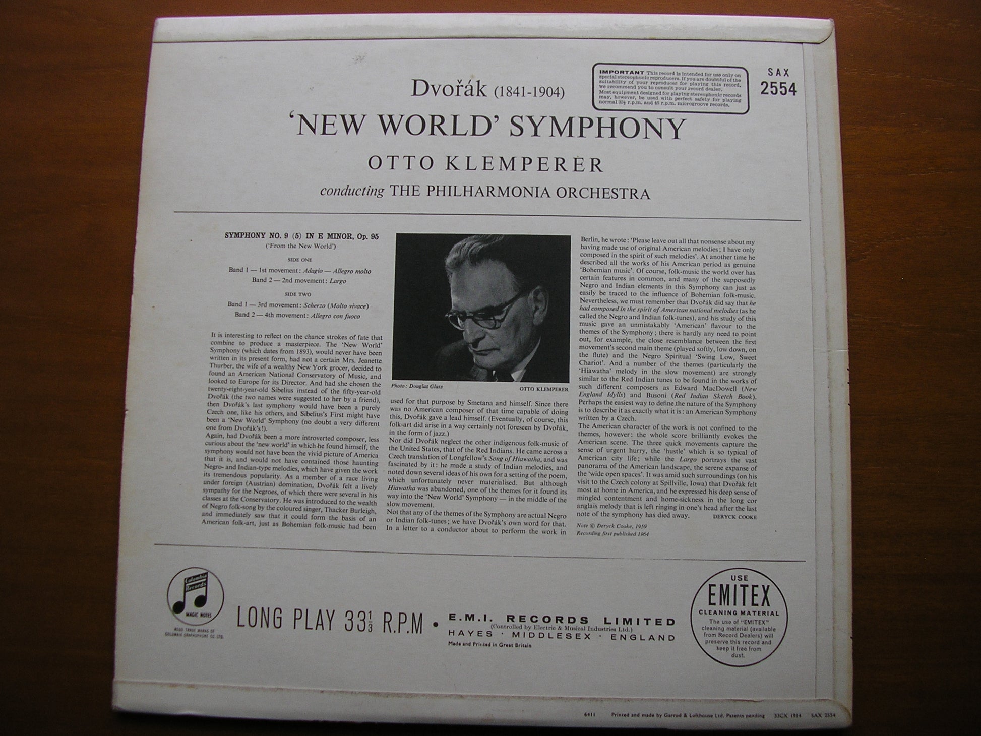 SAX 2554  DVORAK: SYMPHONY No. 9    OTTO KLEMPERER / PHILHARMONIA ORCHESTRA