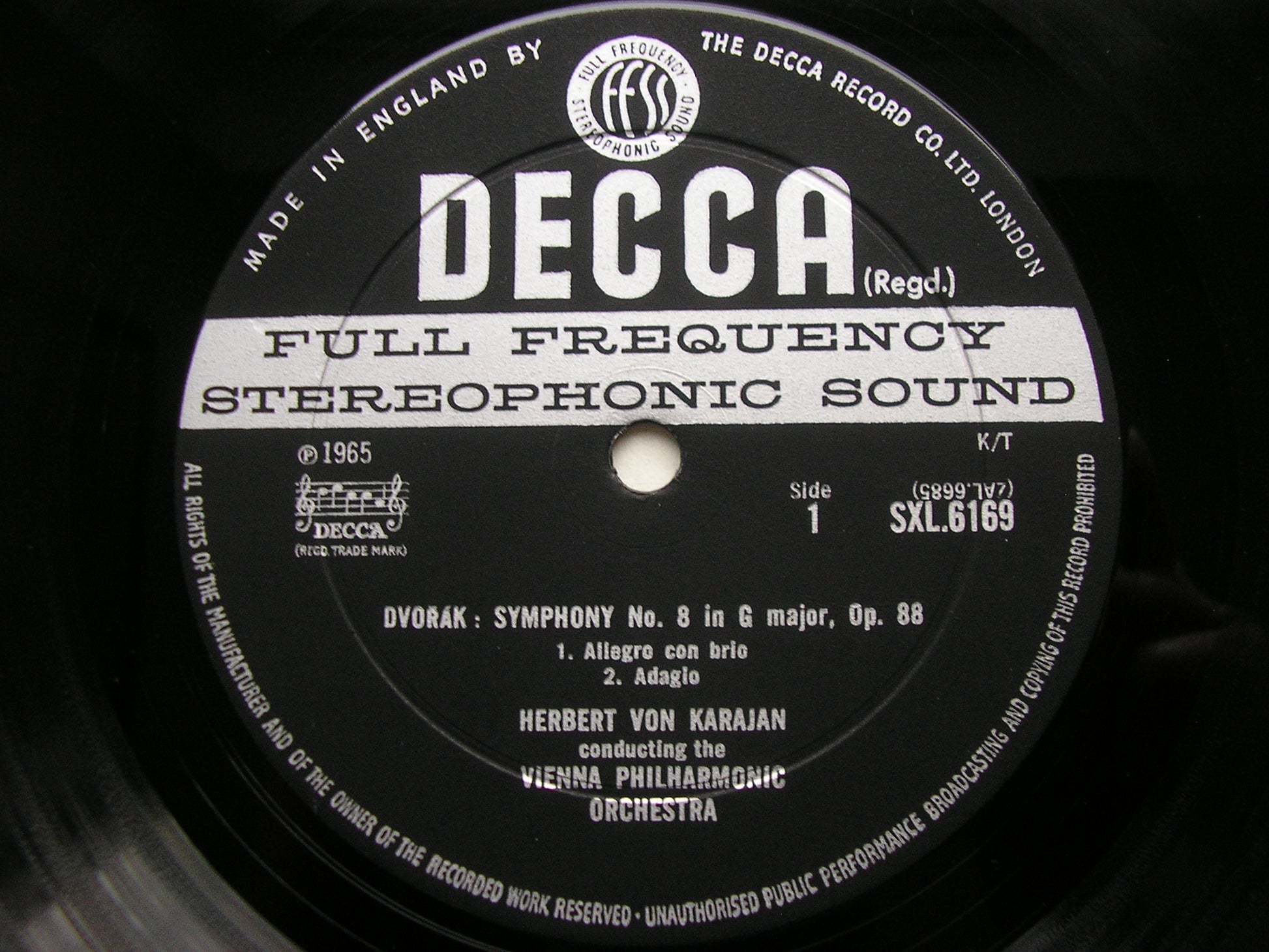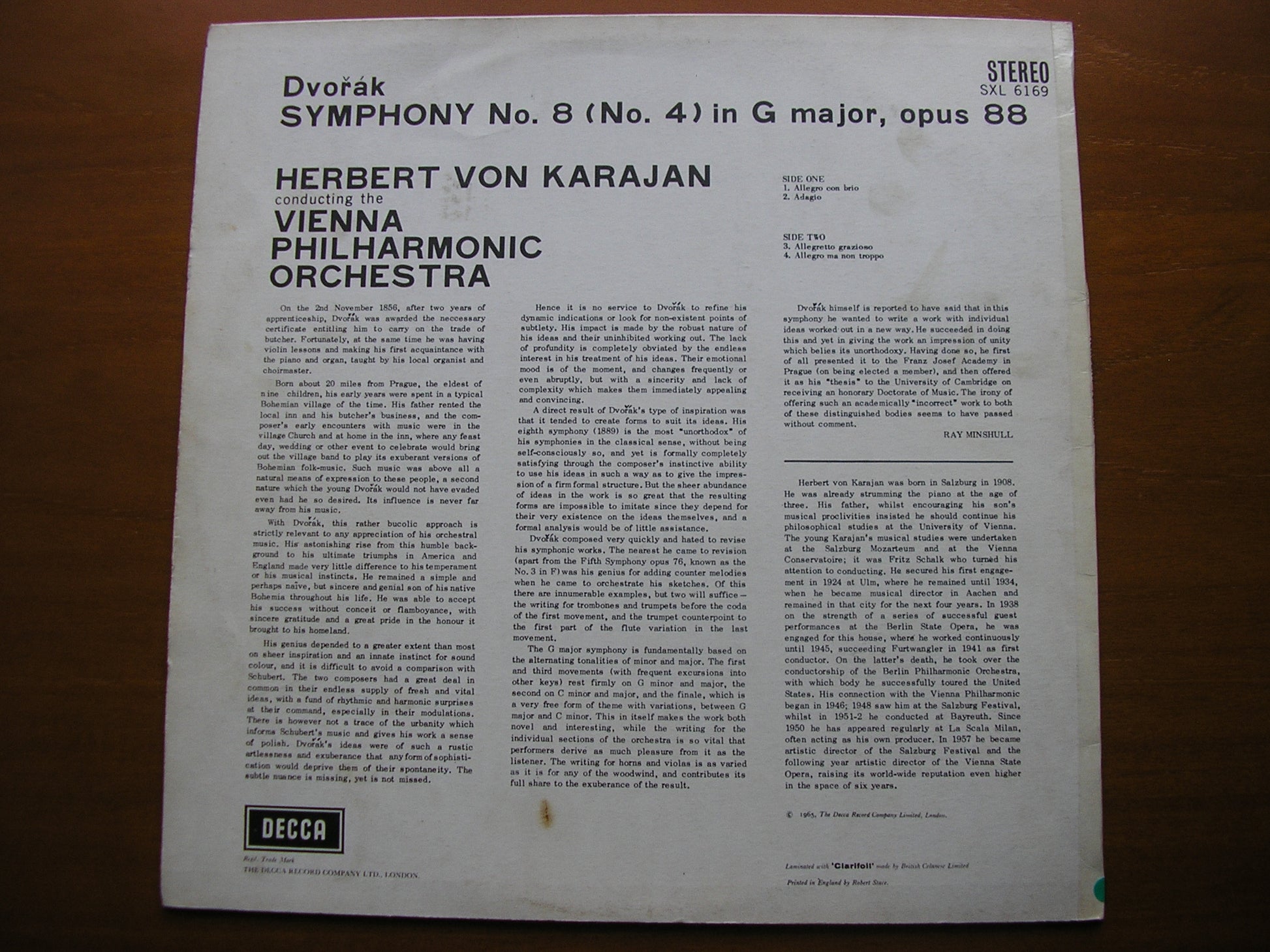 SXL 6169  DVORAK: SYMPHONY No. 8     HERBERT VON KARAJAN / VIENNA PHILHARMONIC ORCHESTRA