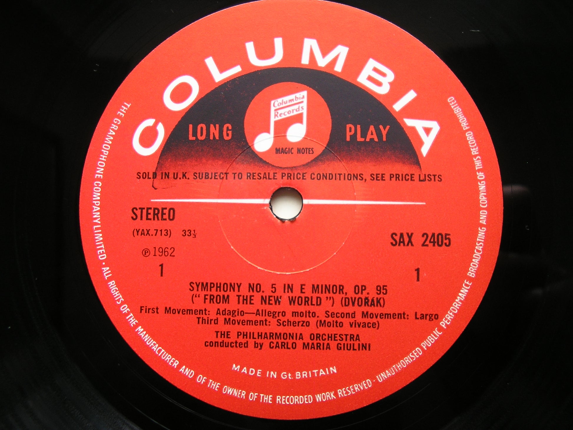 DVORAK: SYMPHONY No. 9 New World / OVERTURE Carnaval GIULINI / PHILHARMONIA SAX 2405
