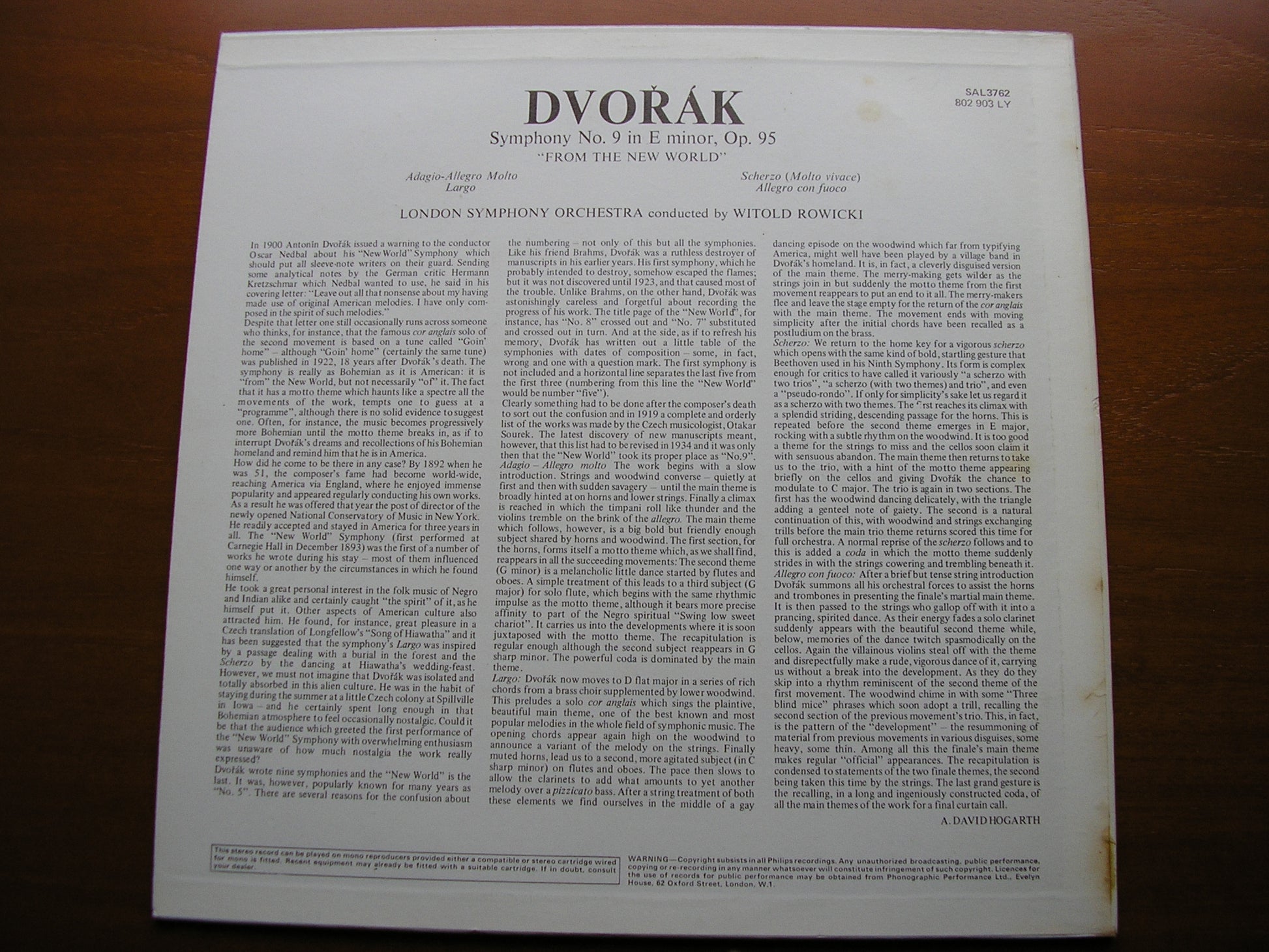 SAL 3762  DVORAK: SYMPHONY No. 9 'New World'     WITOLD ROWICKI / LONDON SYMPHONY ORCHESTRA