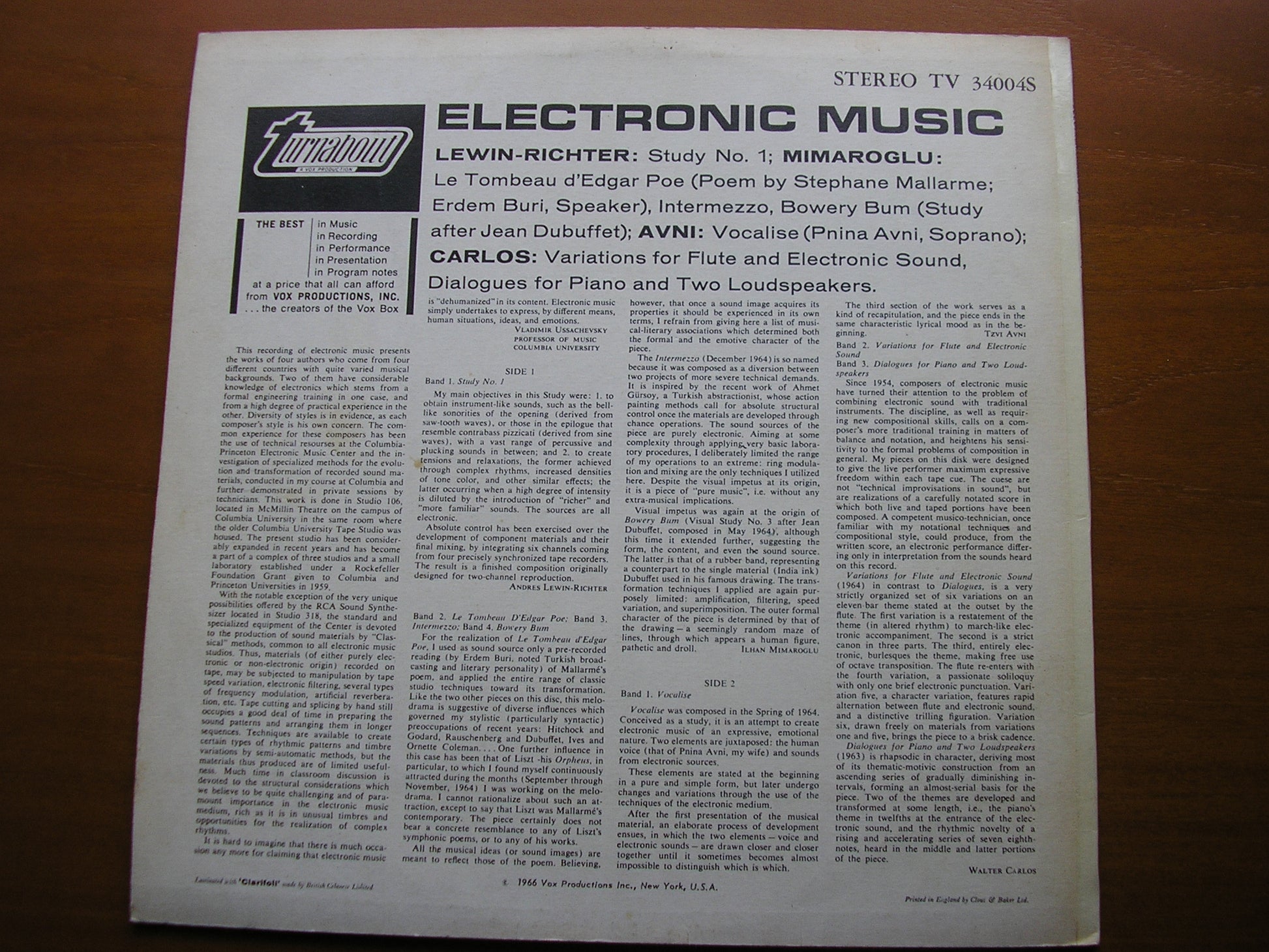 TV 3004S  LEWIN-RICHTER / AVNI / CARLOS / MIMAROGLU: ELECTRONIC MUSIC