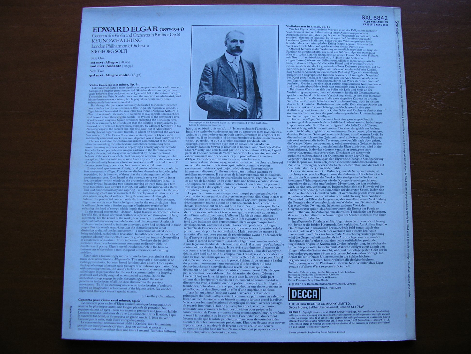 ELGAR: VIOLIN CONCERTO CHUNG / LONDON PHILHARMONIC / SOLTI SXL 6842