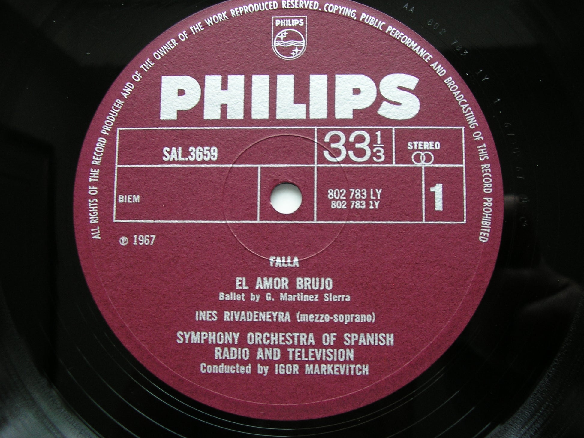 FALLA: EL AMOR BRUJO / CHABRIER: ESPANA / RAVEL: BOLERO MARKEVITCH / SPANISH RADIO ORCHESTRA SAL 3659