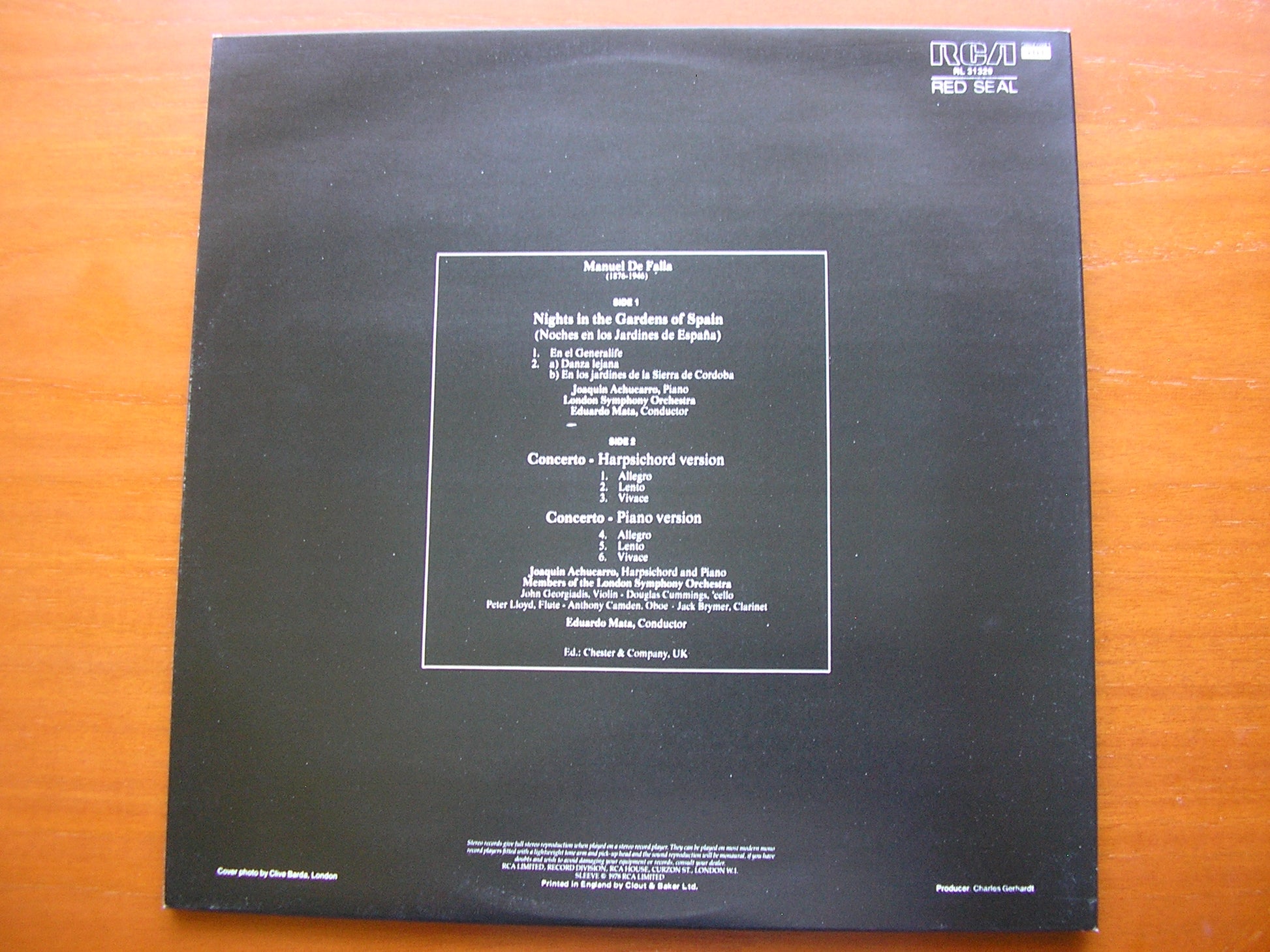 RL 31329  FALLA: NIGHTS IN THE GARDENS OF SPAIN / CONCERTO in both HARSICHORD and PIANO versions     JOAQUIN ACHUCARRO / LONDON SYMPHONY ORCHESTRA / EDUARDO MATA