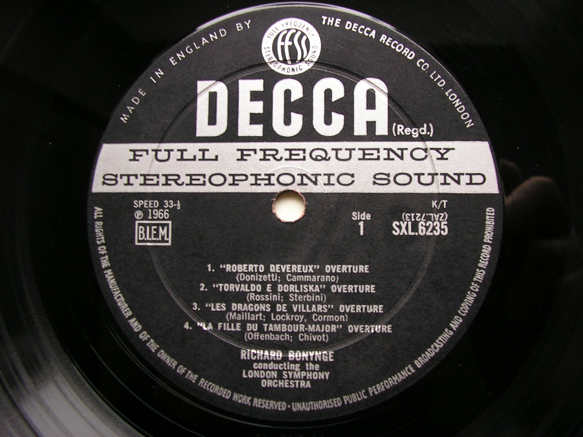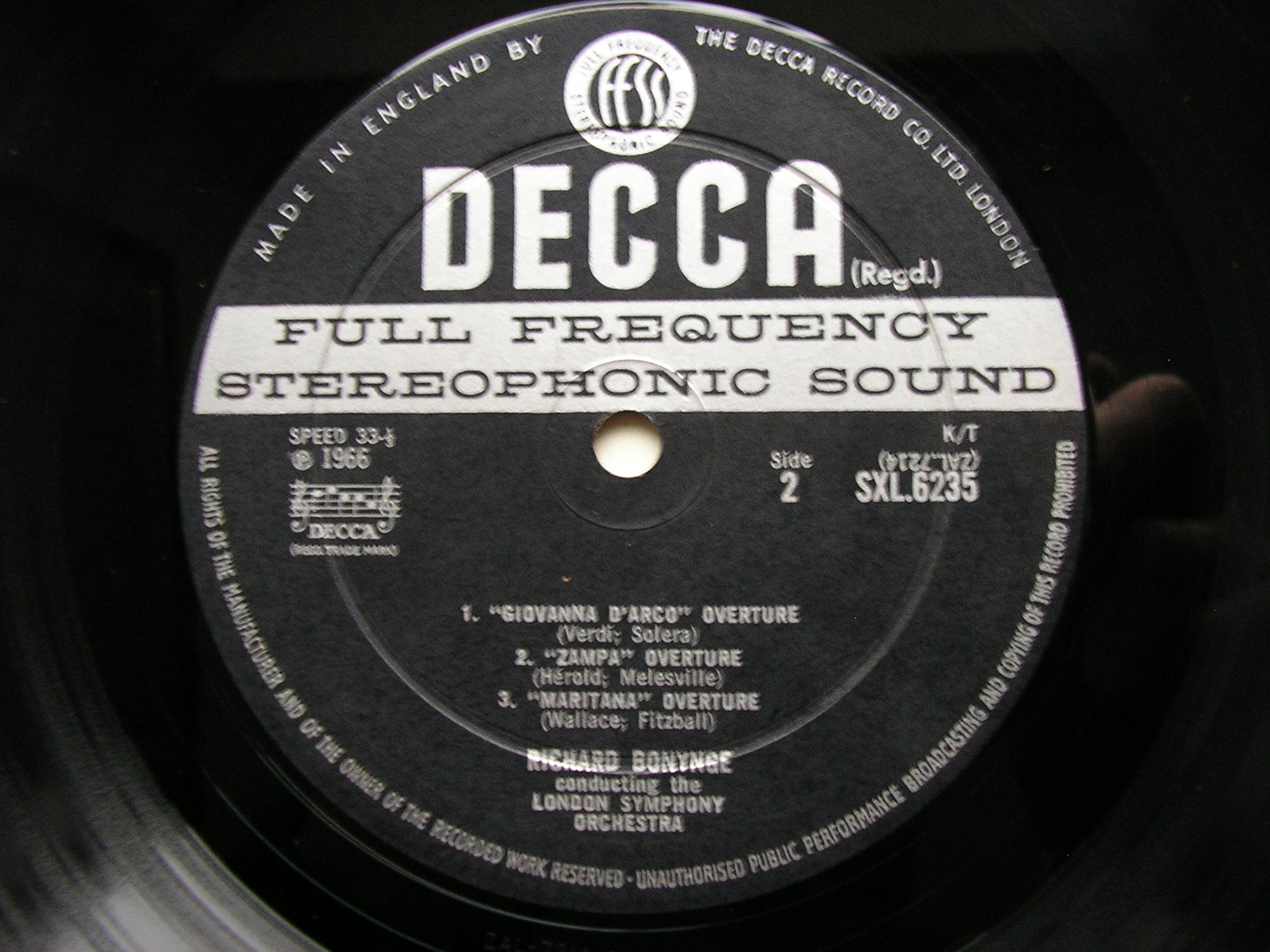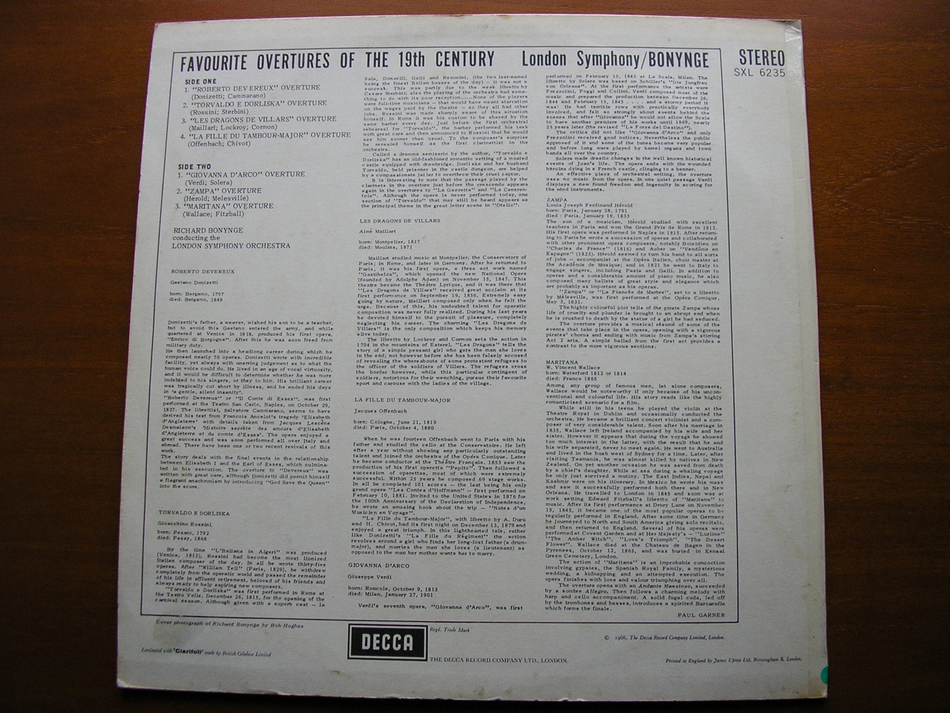 SXL 6235 FAVOURITE OVERTURES OF THE 19th CENTURY: VERDI / OFFENBACH / ROSSINI / WALLACE / MAILLART LONDON SYMPHONY ORCHESTRA  / RICHARD BONYNGE