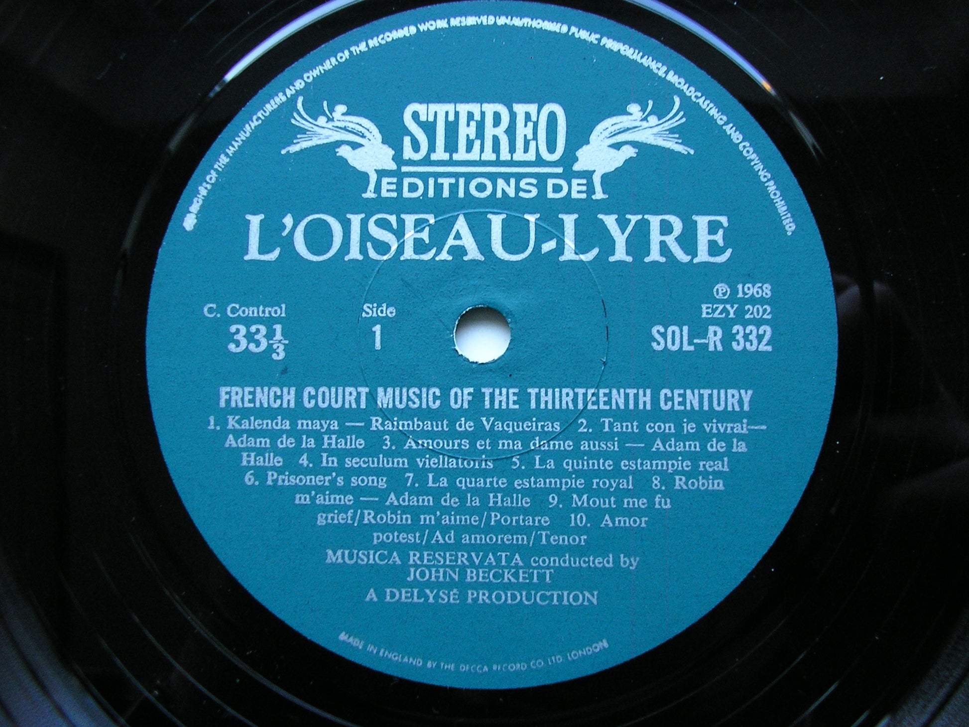 SOL-R 332  FRENCH COURT MUSIC OF THE 13th CENTURY: DE VAQUEIRAS / DE LA HALLE / BRULLES        MUSICA RESERVATA / JOHN BECKETT
