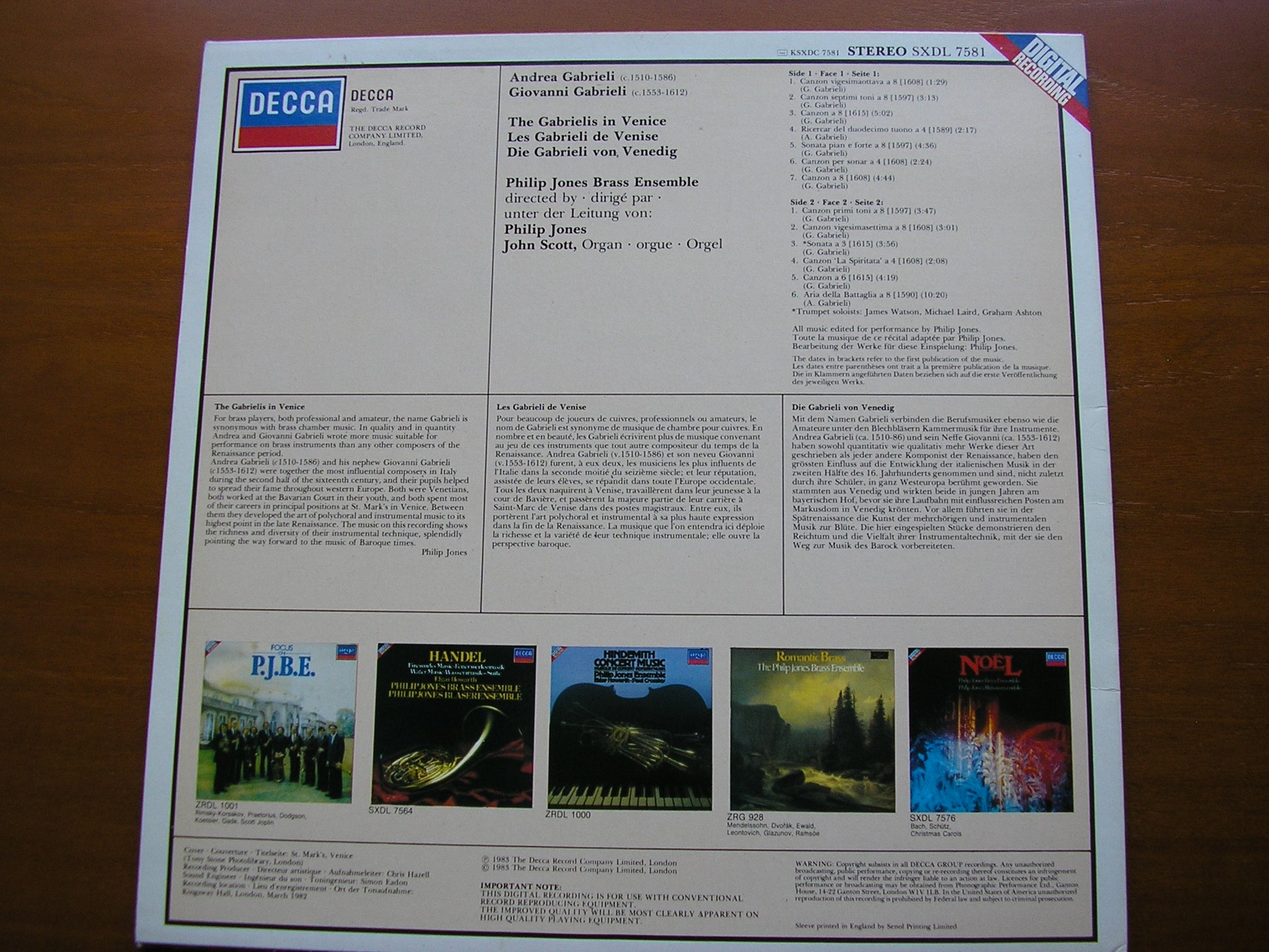 SXDL 7581  GABRIELI: ORCHESTRAL MUSIC     PHILIP JONES BRASS ENSEMBLE