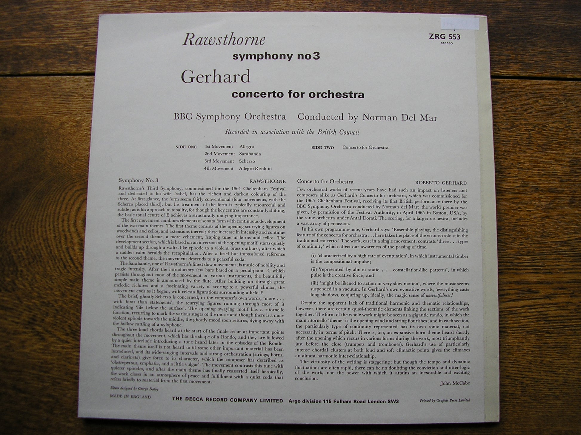 ZRG 553  GERHARD: CONCERTO FOR ORCHESTRA / RAWSTHORNE: SYMPHONY No. 3   NORMAN DEL MAR / BBC SYMPHONY ORCHESTRA