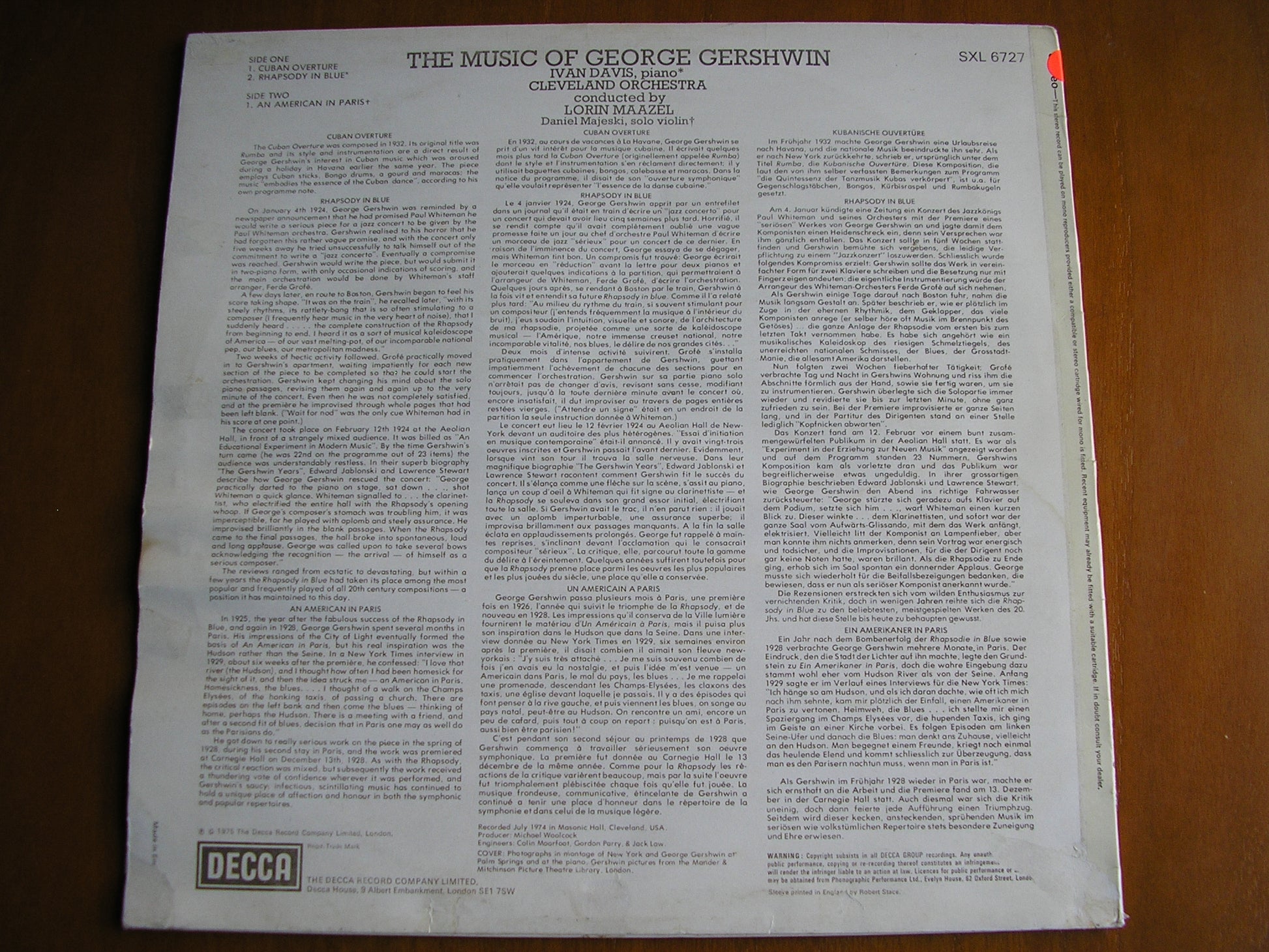 GERSHWIN: CUBAN OVERTURE / RHAPSODY IN BLUE / AN AMERICAN IN PARIS DAVIS / CLEVELAND ORCHESTRA / MAAZEL test pressing SXL 6727