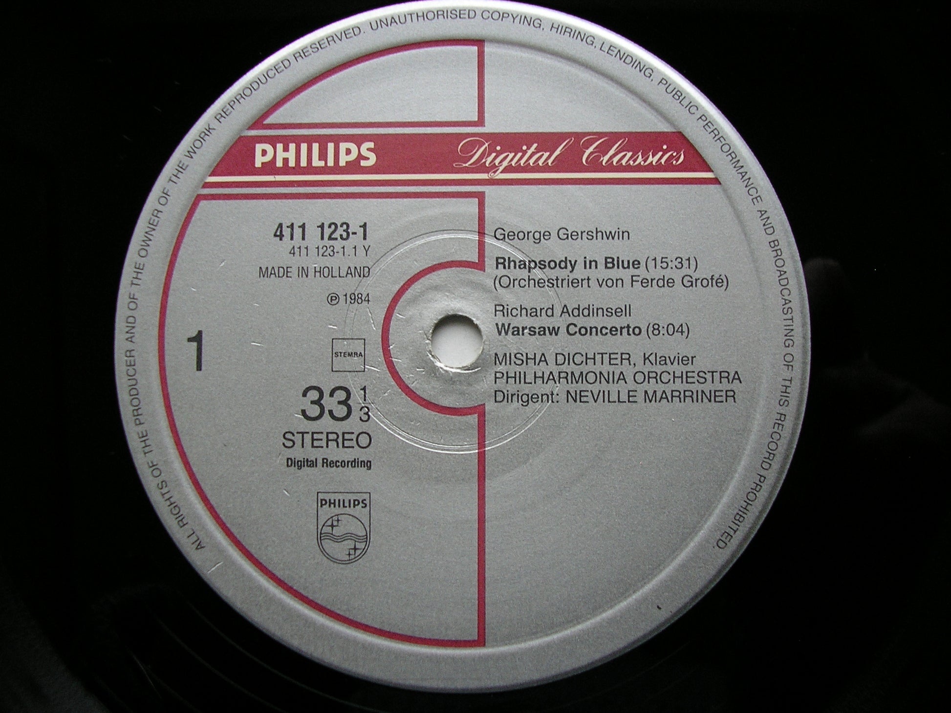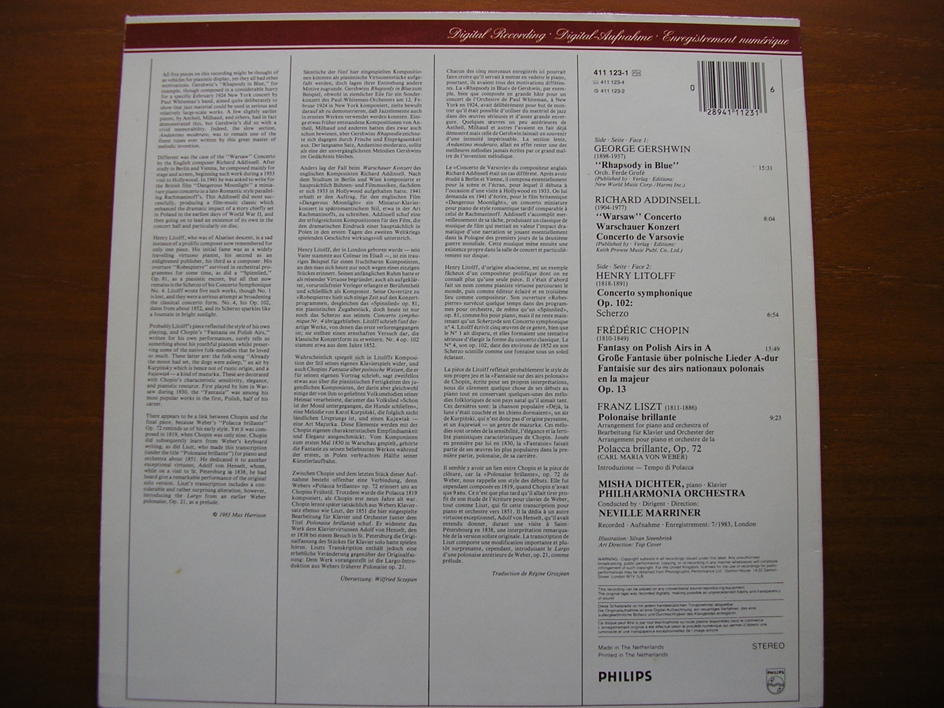 GERSHWIN: RHAPSODY IN BLUE / ADDINSELL: WARSAW CONCERTO / LITOLFF: SCHERZO MISHA DICHTER / PHILHARMONIA / MARRINER 411 123