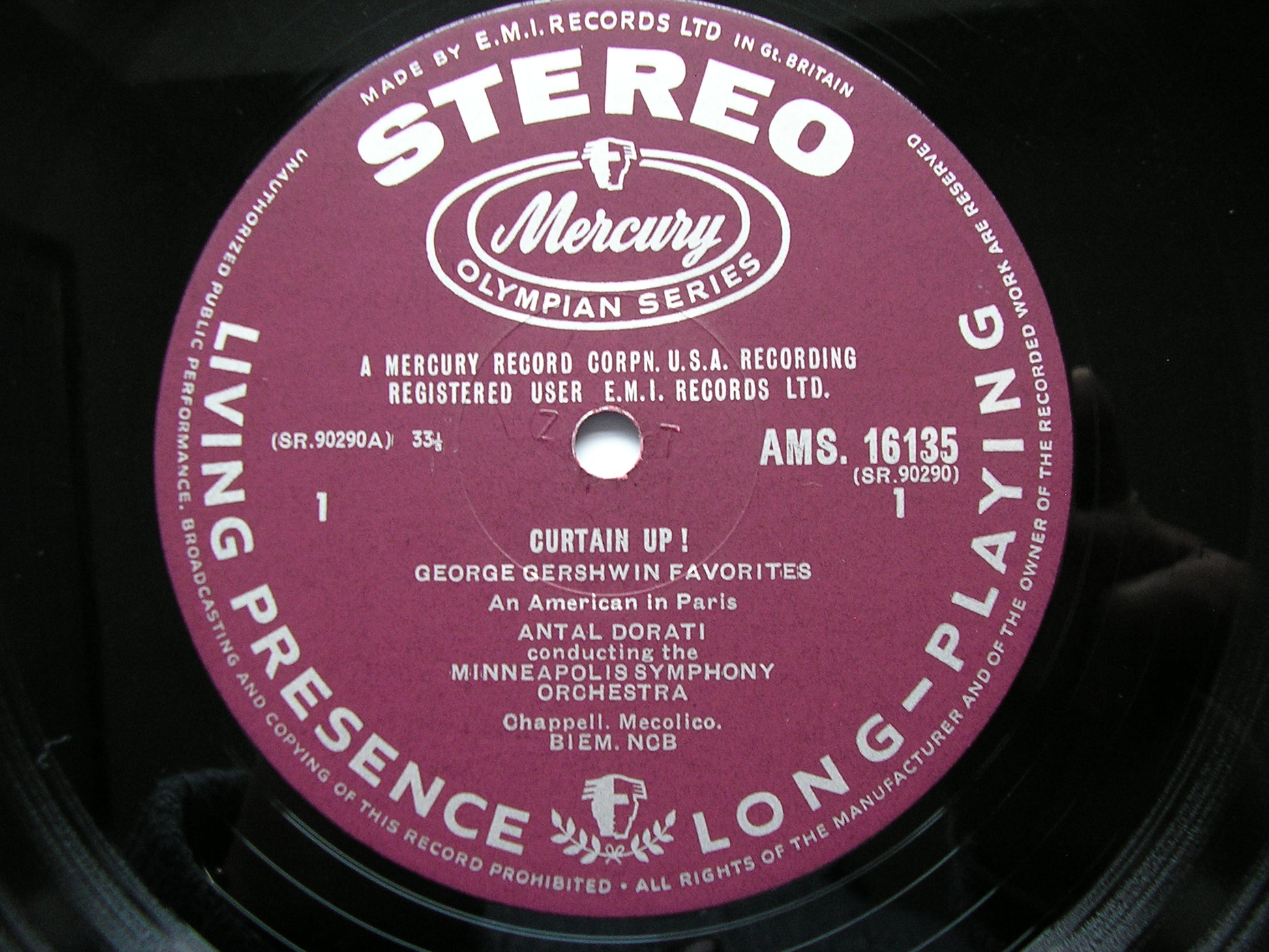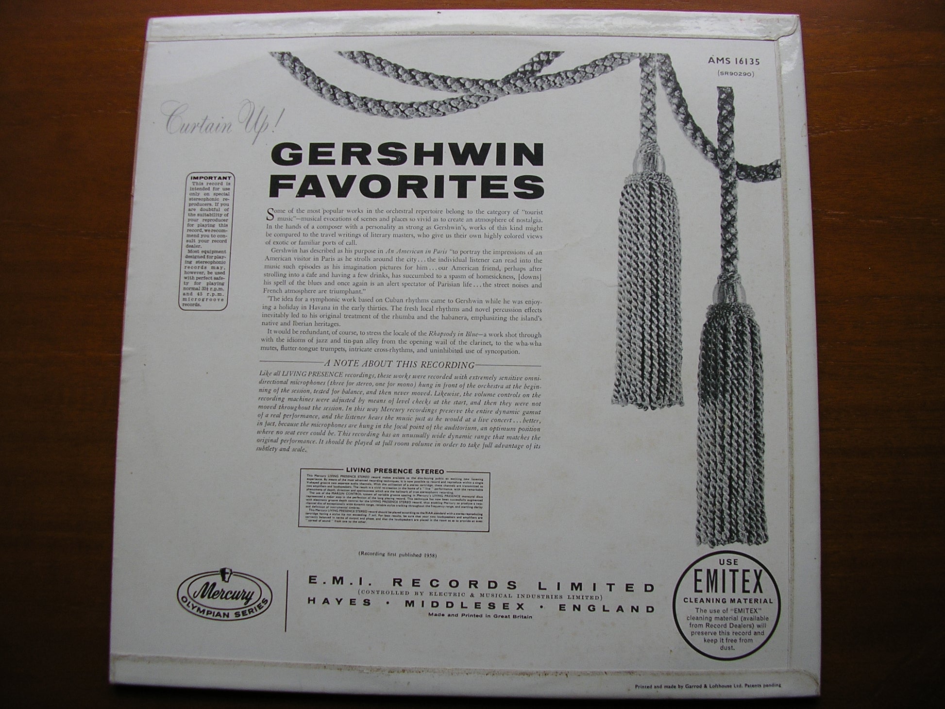 AMS 16135  GERSHWIN: RHAPSODY IN BLUE / AN AMERICAN IN PARIS / CUBAN OVERTURE  EUGENE LIST / HOWARD HANSON / EASTMAN-ROCHESTER SYMPHONY ORCHESTRA / ANTAL DORATI / MINNEAPOLIS SYMPHONY ORCHESTRA