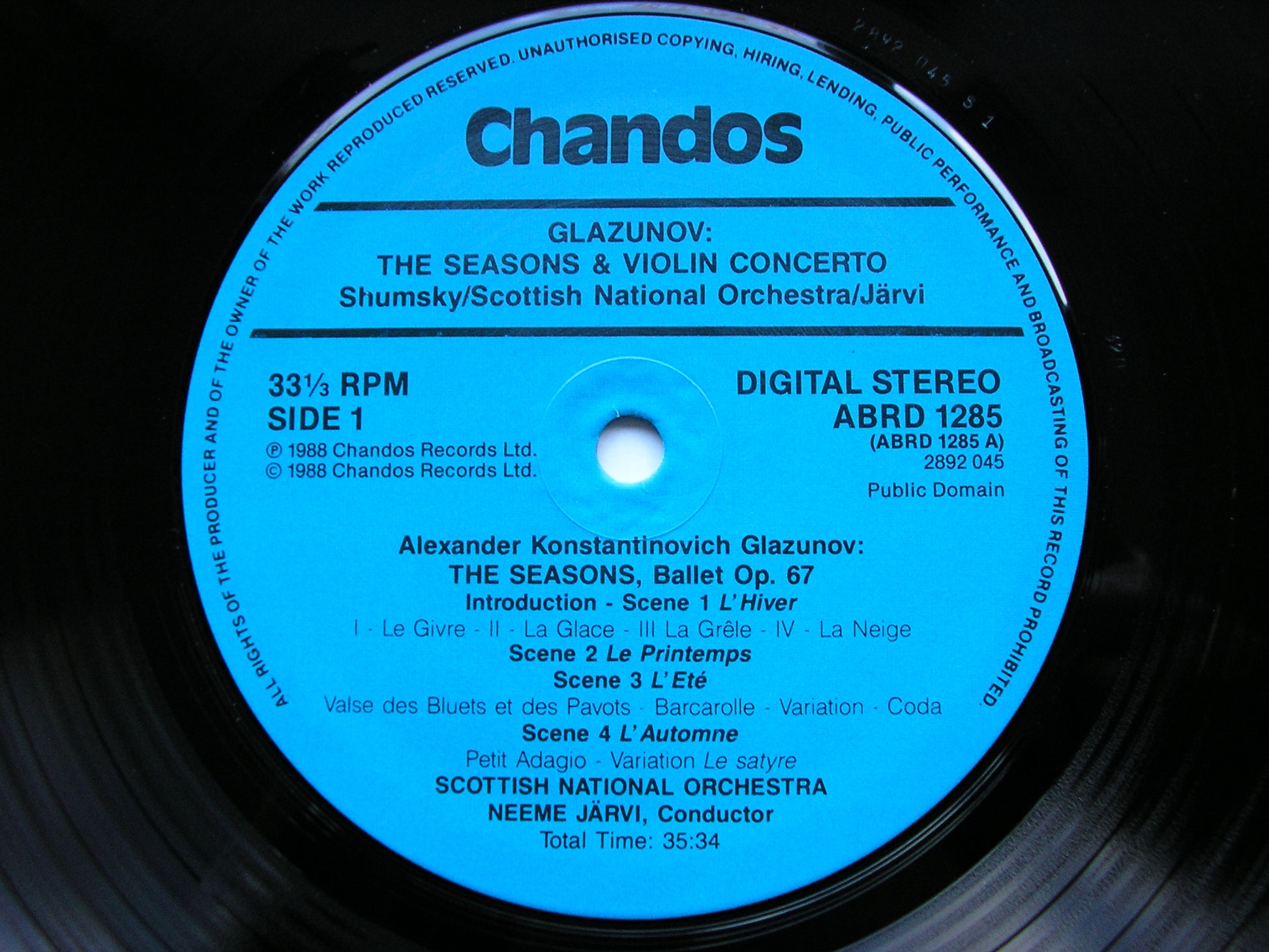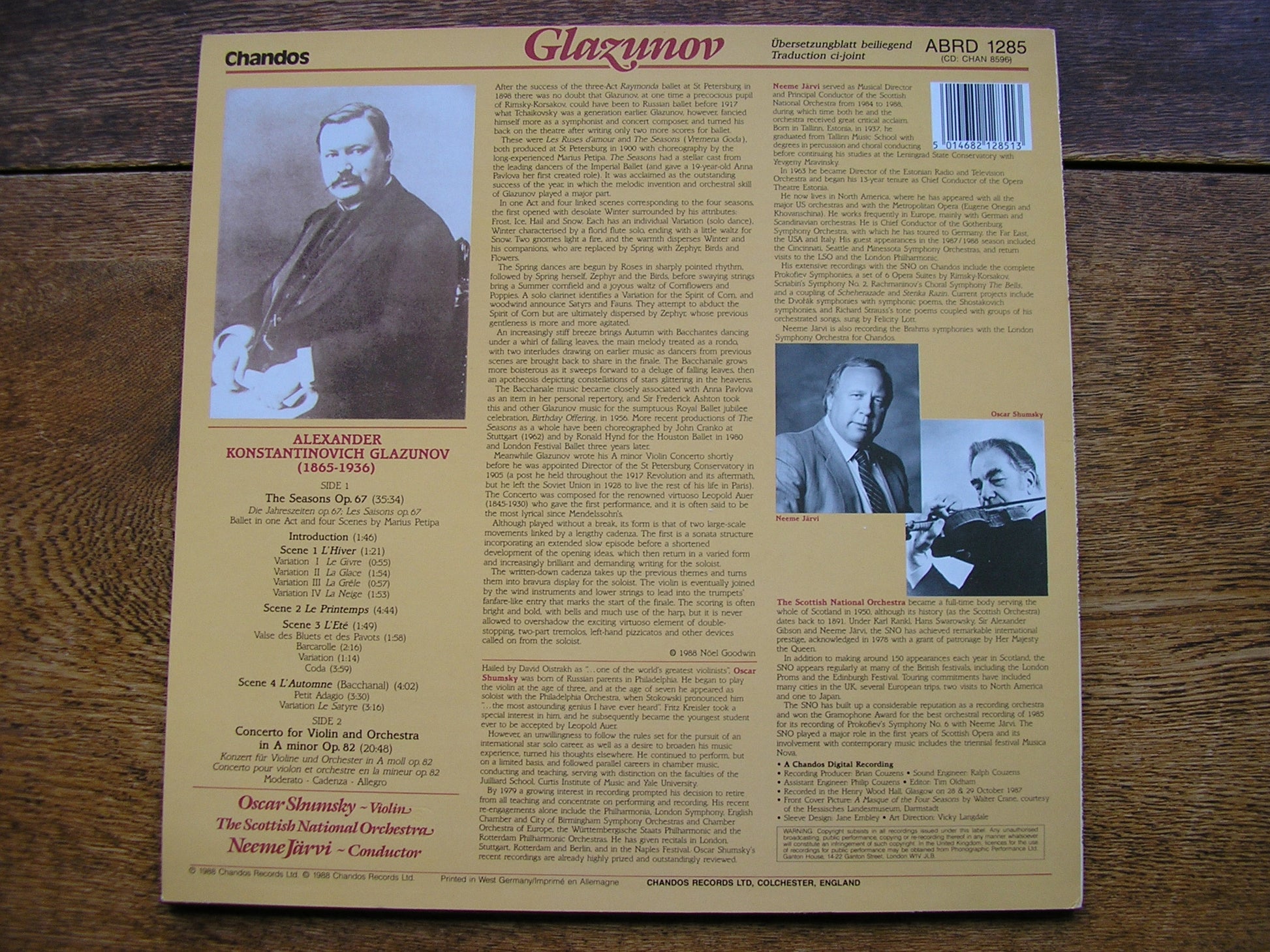 ABRD 1285  GLAZUNOV: THE SEASONS Op. 67 / VIOLIN CONCERTO Op. 82     OSCAR SHUMSKY / SCOTTISH NATIONAL ORCHESTRA / NEEME JARVI