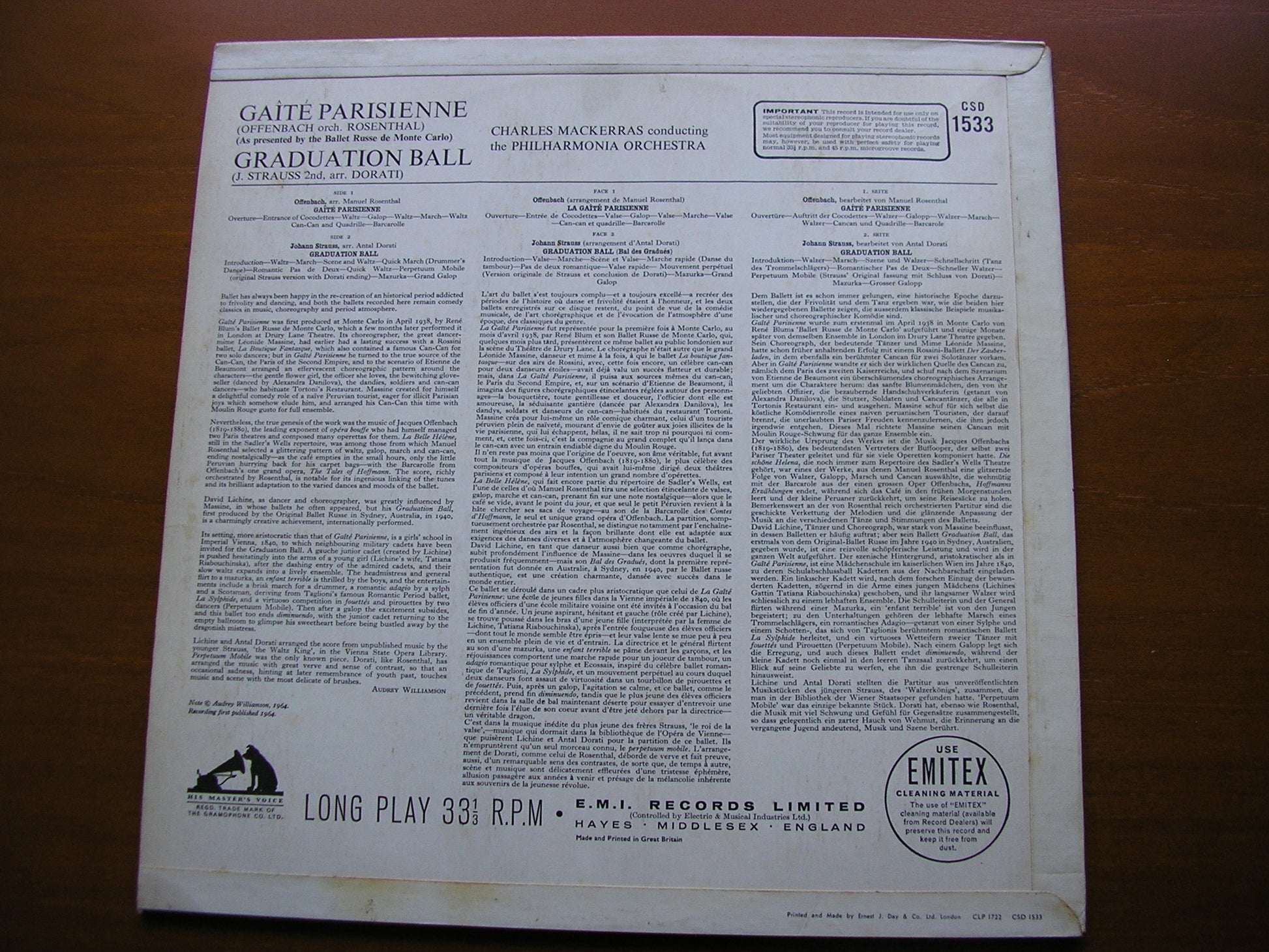 CSD 1533  OFFENBACH: GAITE PARISIENNE / STRAUSS: GRADUATION BALL    CHARLES MACKERRAS / PHILHARMONIA ORCHESTRA
