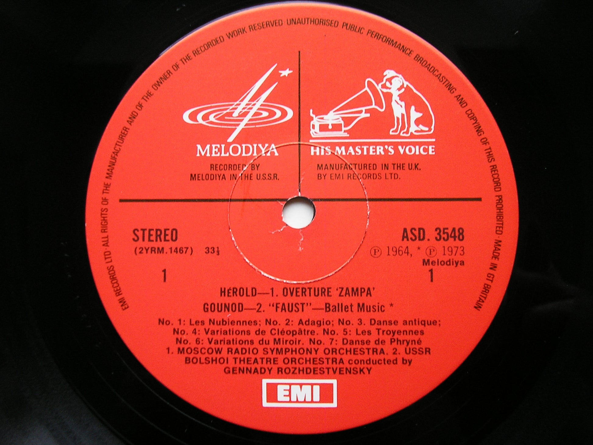 ASD 3548  GOUNOD: ballet music from FAUST / MASSENET: LE CID ballet music / HEROLD: Overture ZAMPA*     GENNADY ROZHDESTVENSKY / MOSCOW RADIO SYMPHONY / USSR SYMPHONY / BORIS KHAIKIN / BOLSHOI ORCHESTRA