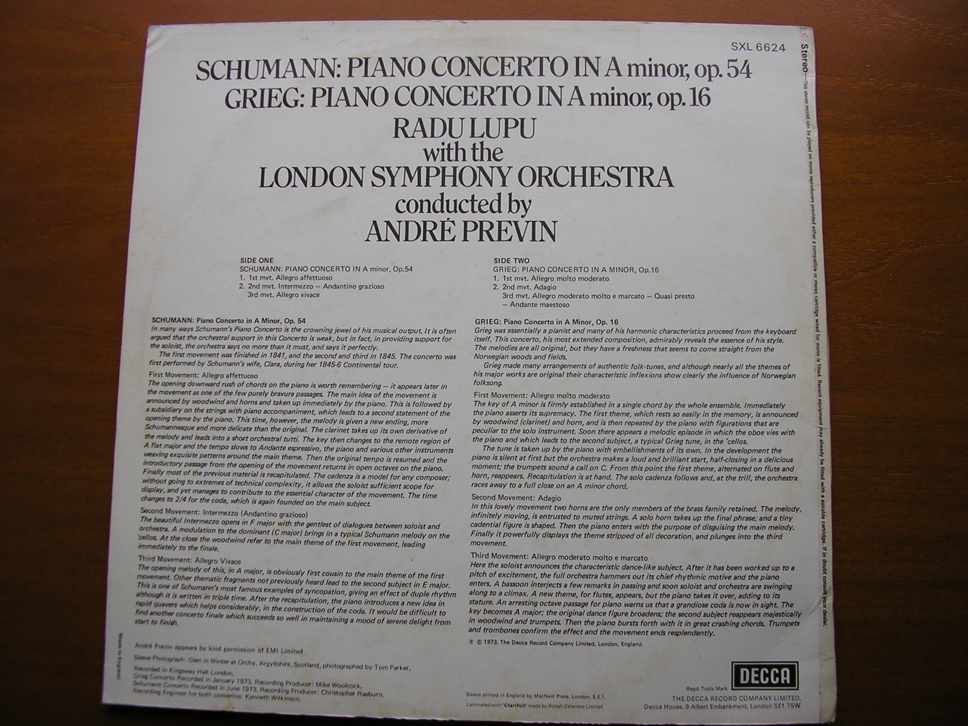 SXL 6624 GRIEG: PIANO CONCERTO / SCHUMANN: PIANO CONCERTO    RADU LUPU / LONDON SYMPHONY ORCHESTRA / ANDRE PREVIN