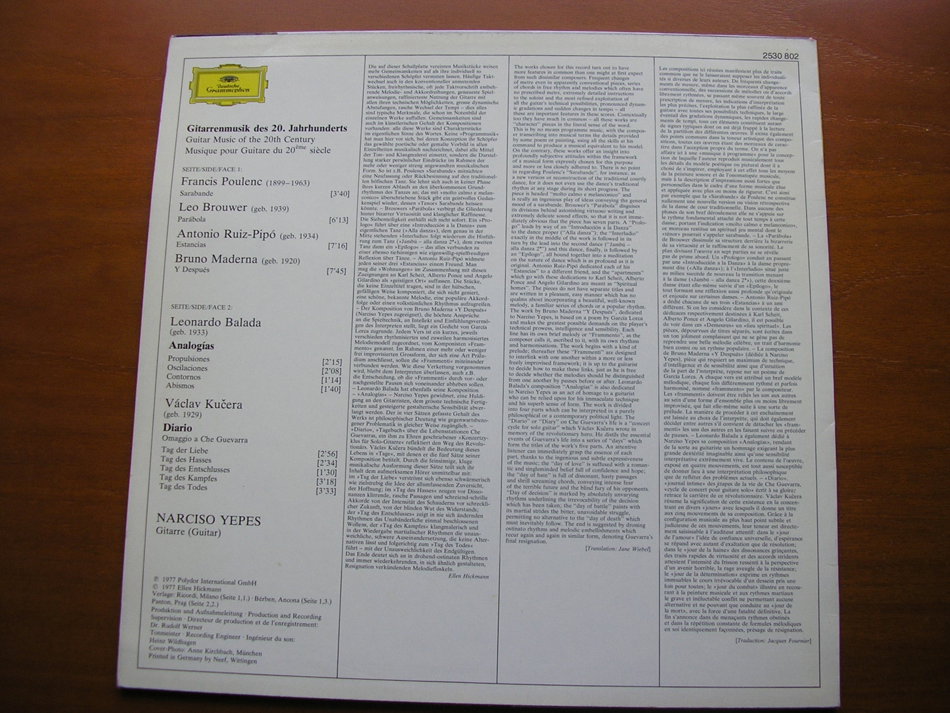 2530 802  GUITAR MUSIC OF THE 20th CENTURY      NARCISO YEPES