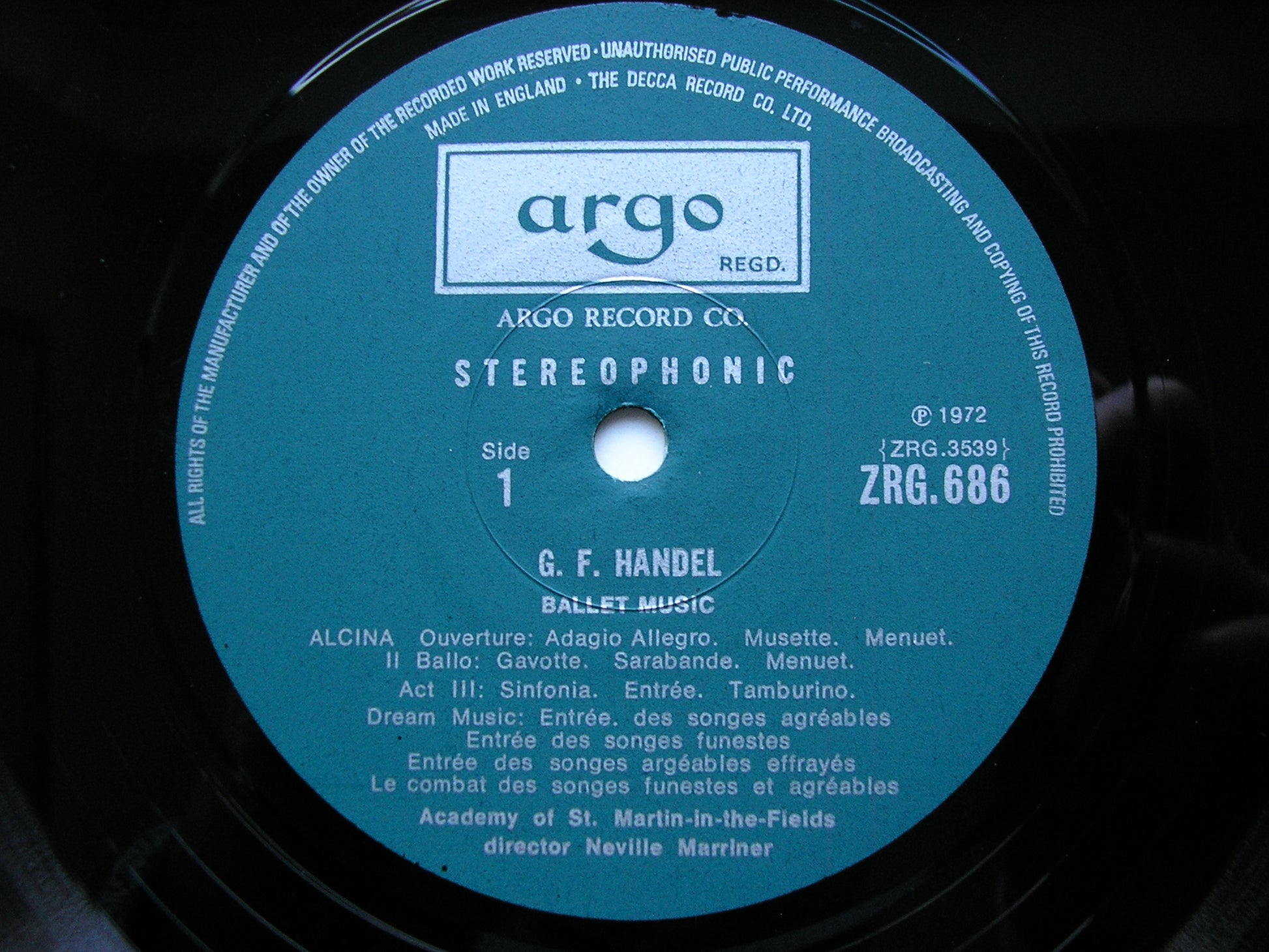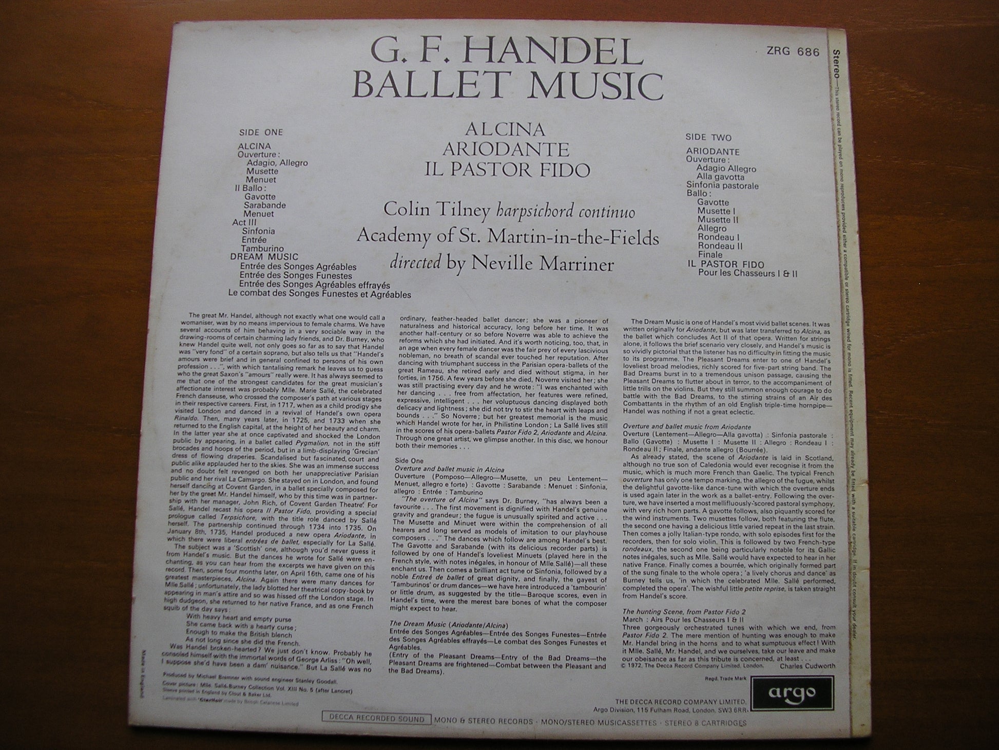 HANDEL: BALLET MUSIC Ariodante / Il Pastor Fido / Alcina ACADEMY OF SAINT MARTIN IN THE FIELDS / MARRINER ZRG 686