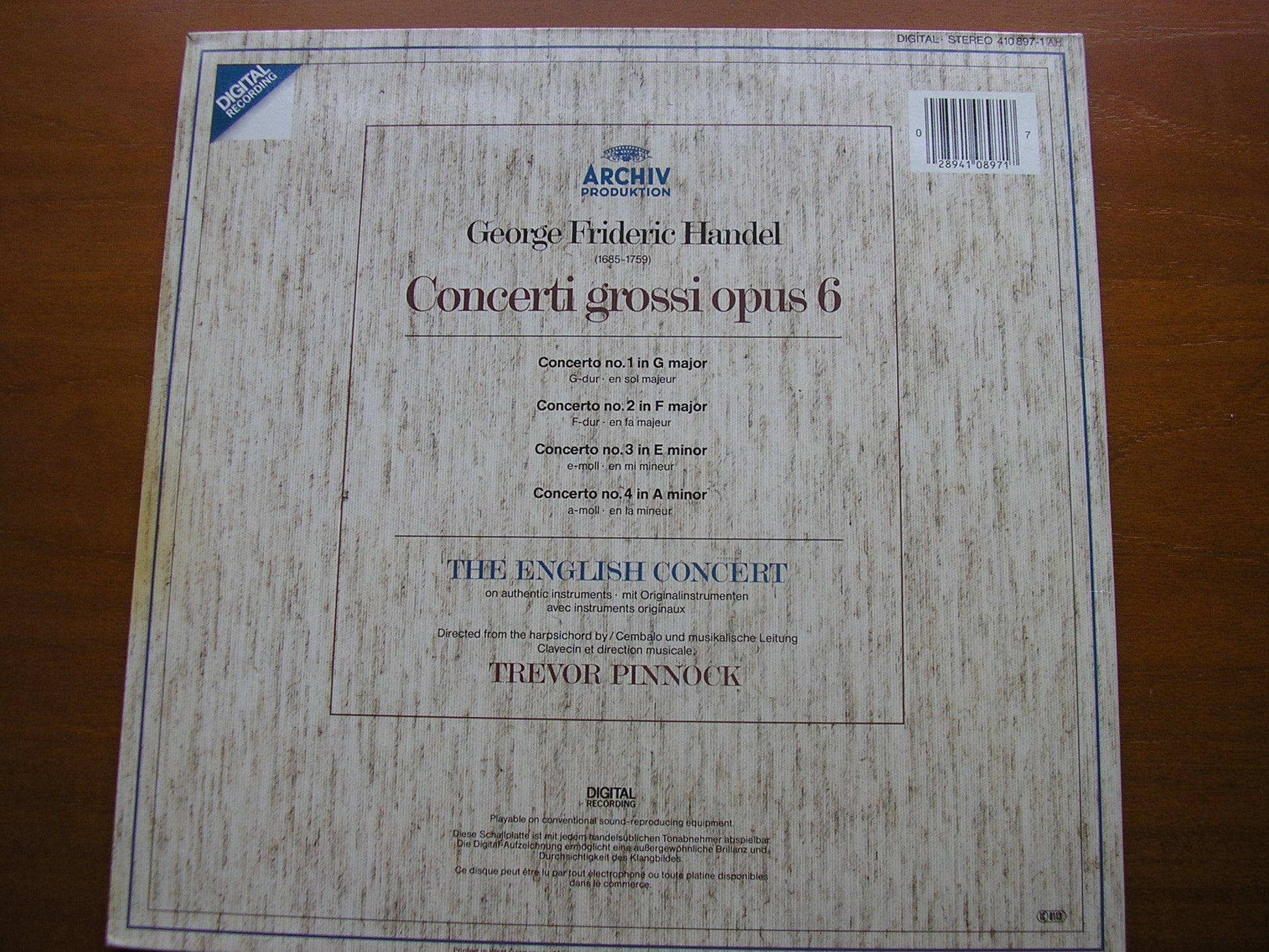 410 897  HANDEL: CONCERTI GROSSI Op. 6  Nos. 1 - 4     TREVOR PINNOCK / THE ENGLISH CONCERT