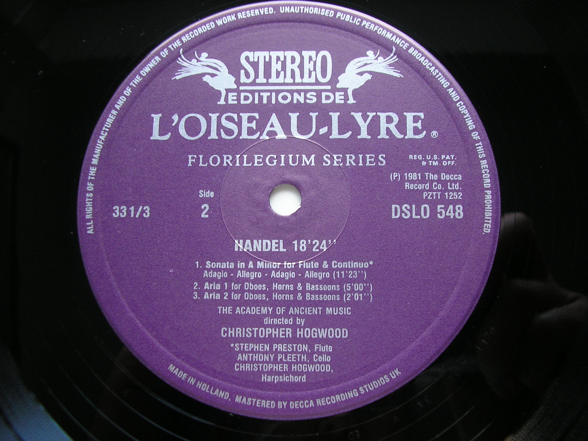 HANDEL: MUSIC FOR THE ROYAL FIREWORKS / MUSIC FOR WIND INSTRUMENTS HOGWOOD / THE ACADEMY OF ANCIENT MUSIC DSLO 548