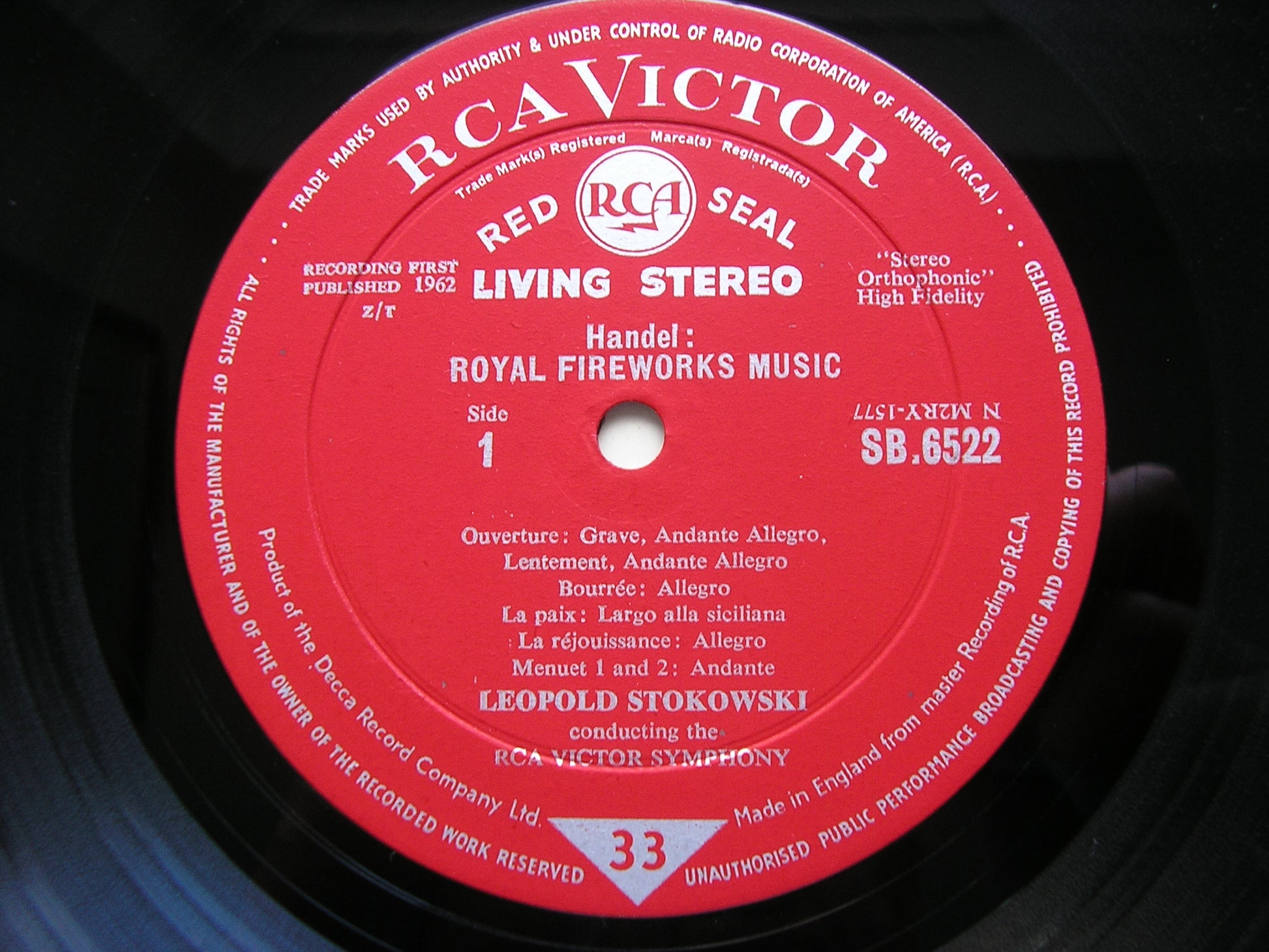 SB 6522  HANDEL: ROYAL FIREWORKS MUSIC / WATER MUSIC   LEOPOLD STOKOWSKI / RCA VICTOR SYMPHONY ORCHESTRA