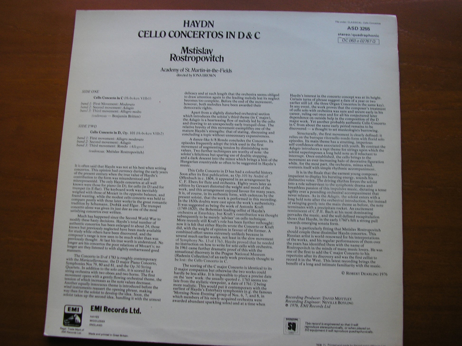ASD 3255 HAYDN: CELLO CONCERTOS IN D & C      MSTISLAV ROSTROPOVITCH / ACADEMY OF ST MARTIN IN THE FIELDS / IONA BROWN