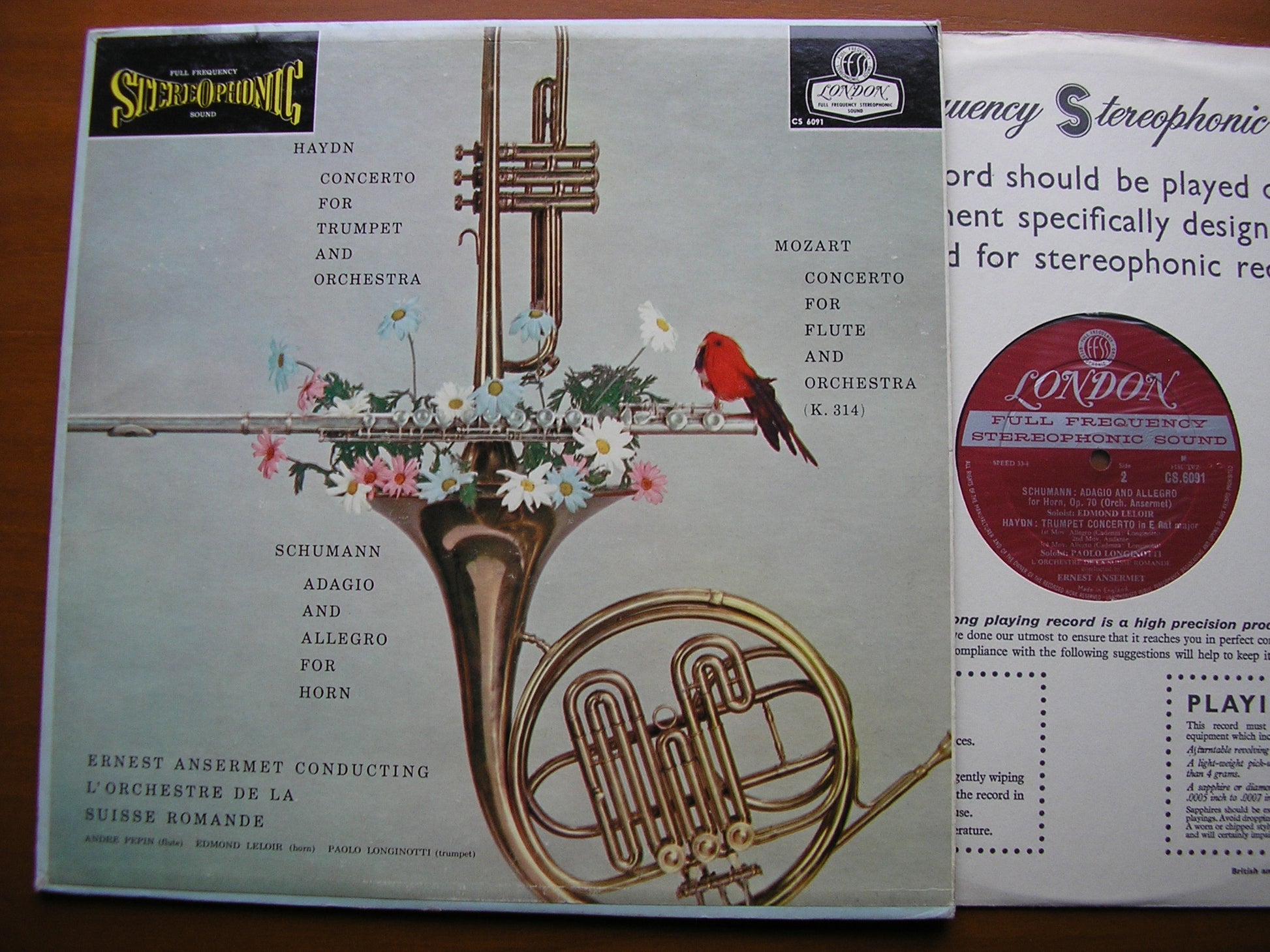 HAYDN: TRUMPET CONCERTO / MOZART: FLUTE CONCERTO / SCHUMANN: ADAGIO & ALLEGRO ANSERMET / SUISSE ROMANDE ORCHESTRA CS 6091