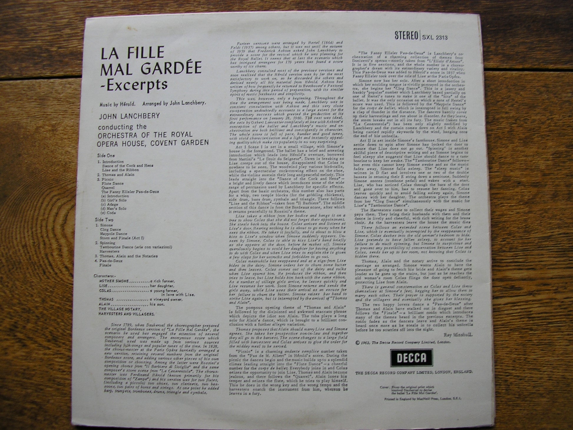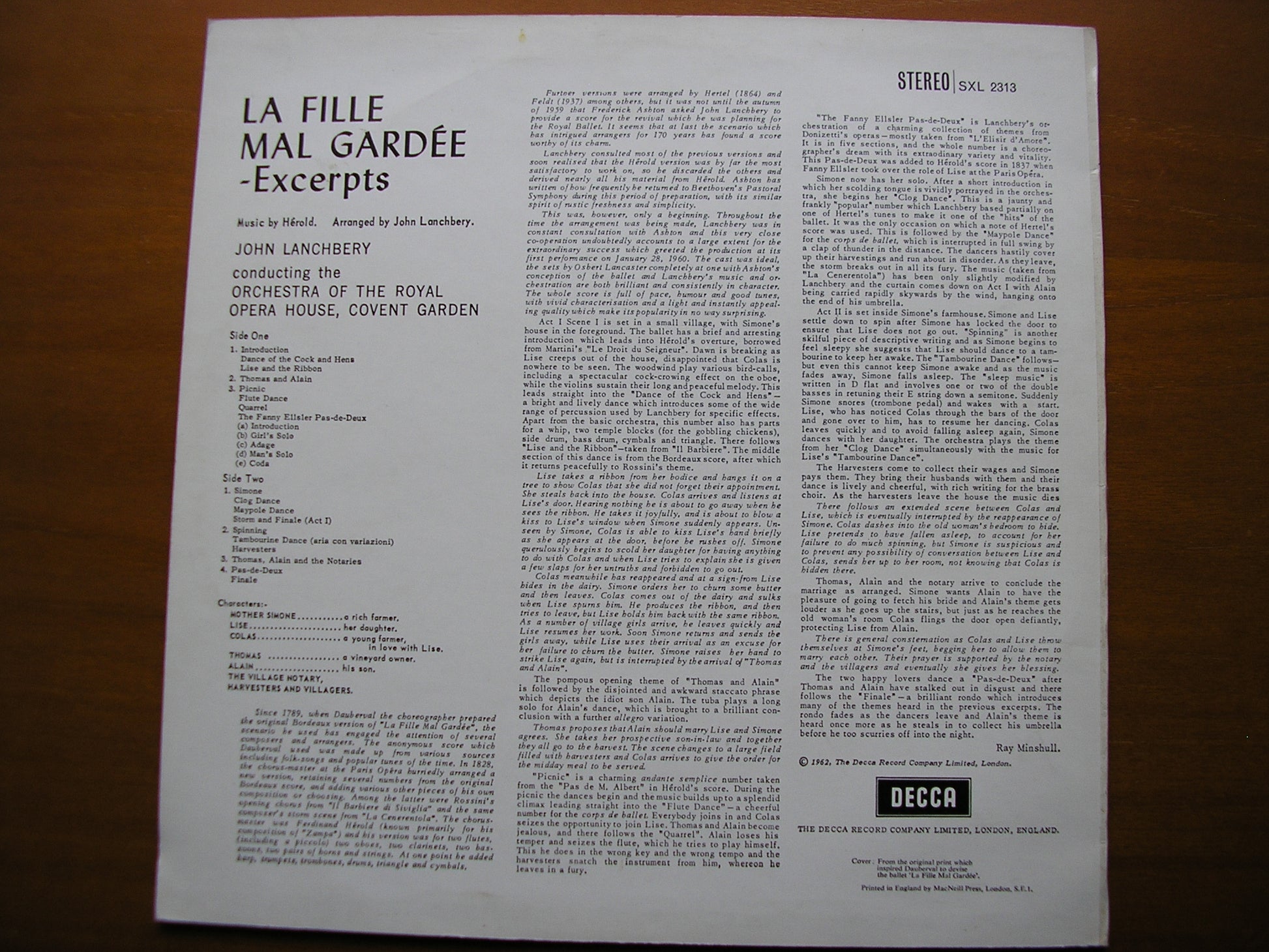 SXL 2313  HEROLD: LA FILLE MAL GARDEE      JOHN LANCHBERY / ORCHESTRA OF THE ROYAL OPERA HOUSE COVENT GARDEN