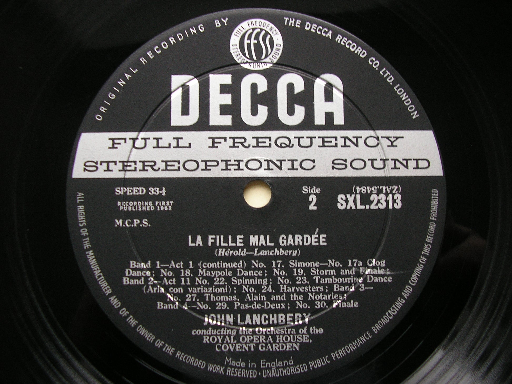 SXL 2313  HEROLD: LA FILLE MAL GARDEE     JOHN LANCHBERY / ORCHESTRA OF THE ROYAL OPERA HOUSE COVENT GARDEN
