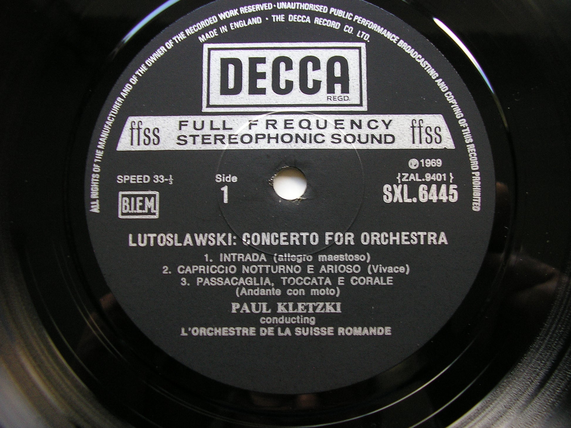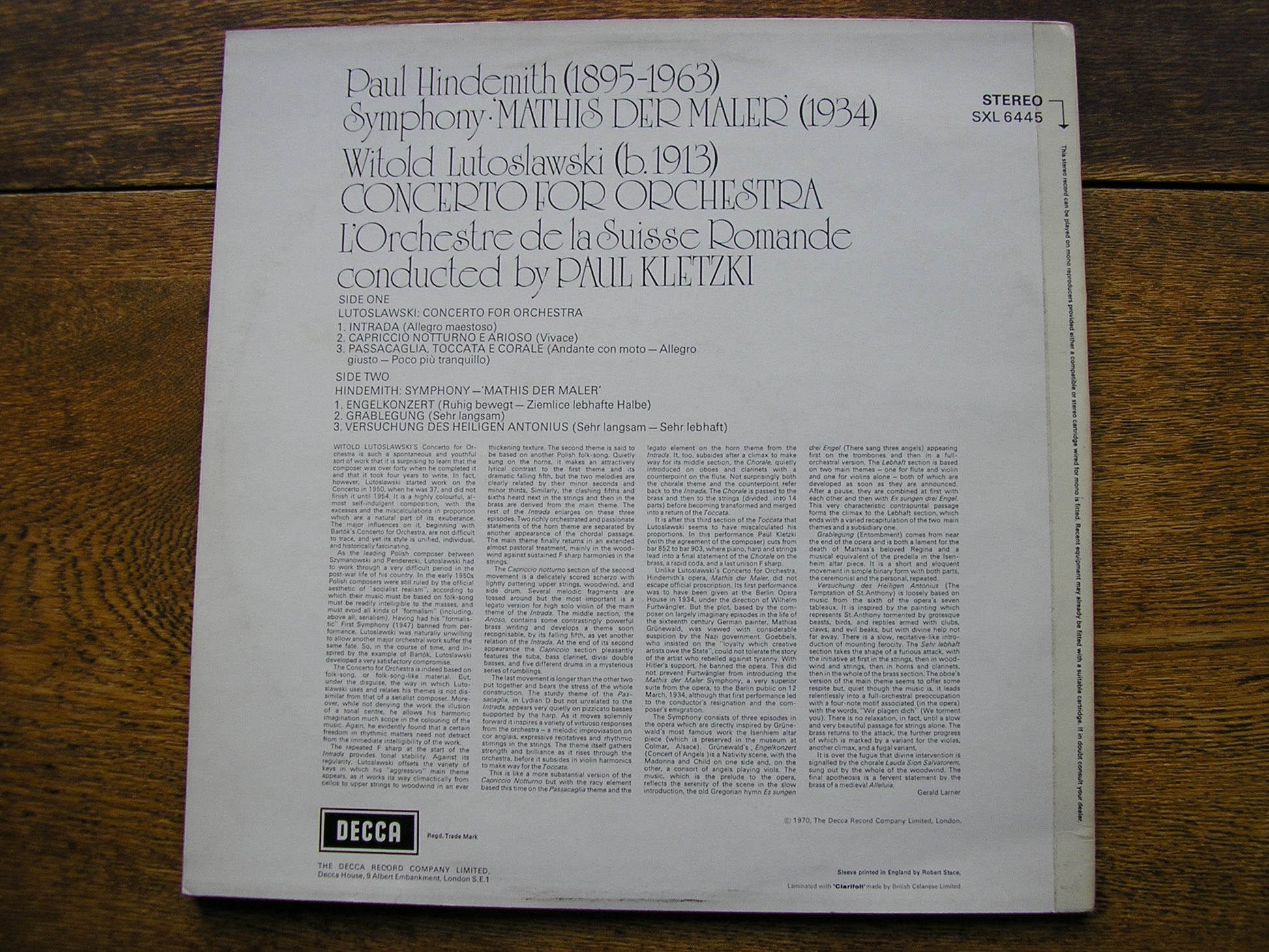 SXL 6445  HINDEMITH: MATHIS DER MALER / LUTOSLAWSKI: CONCERTO FOR ORCHESTRA   PAUL KLETZKI / SUISSE ROMANDE ORCHESTRA