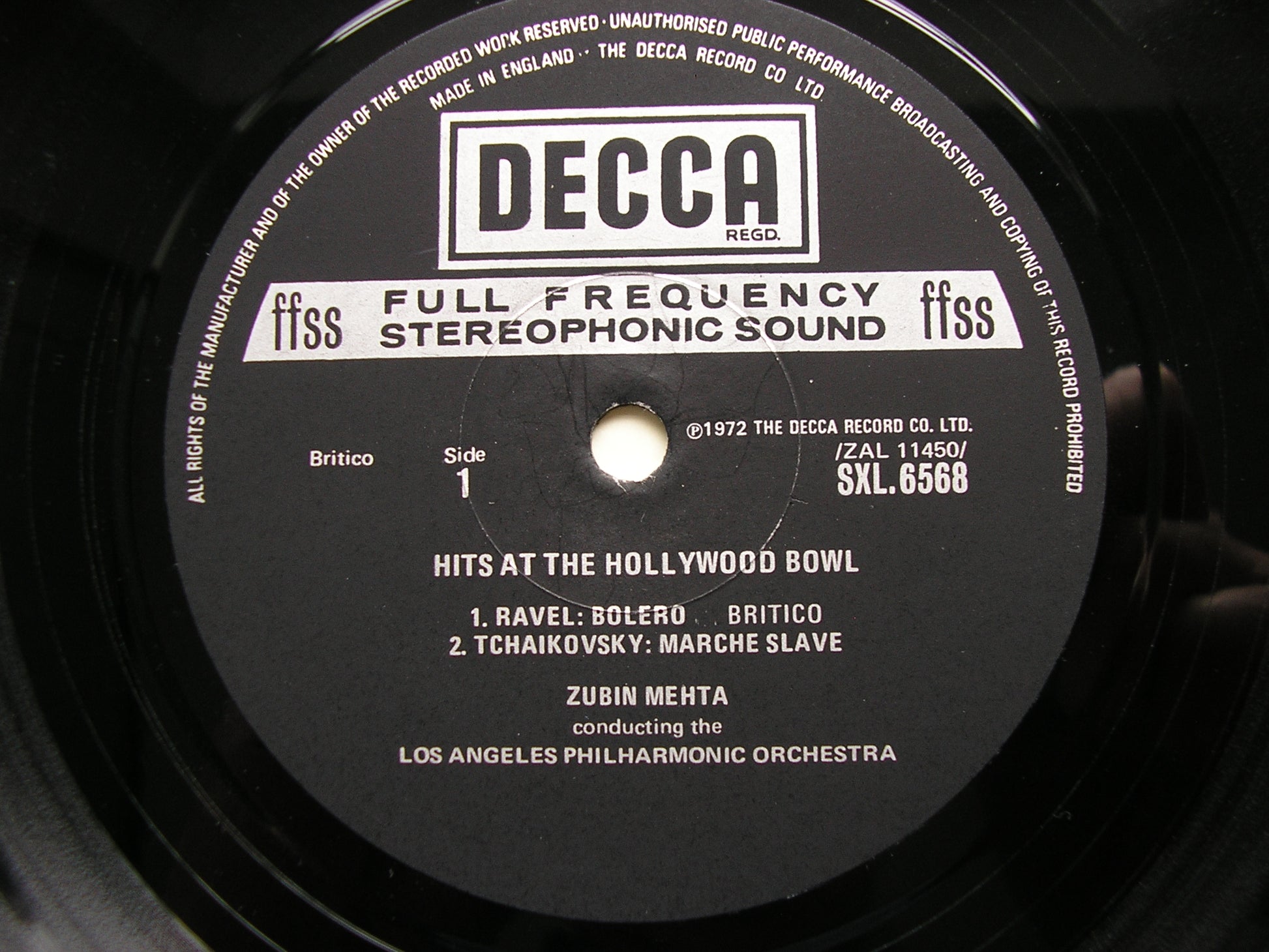 HITS FROM THE HOLLYWOOD BOWL: RAVEL / TCHAIKOVSKY / SUPPE / VERDI / BIZET MEHTA / LOS ANGELES PHILHARMONIC SXL 6568