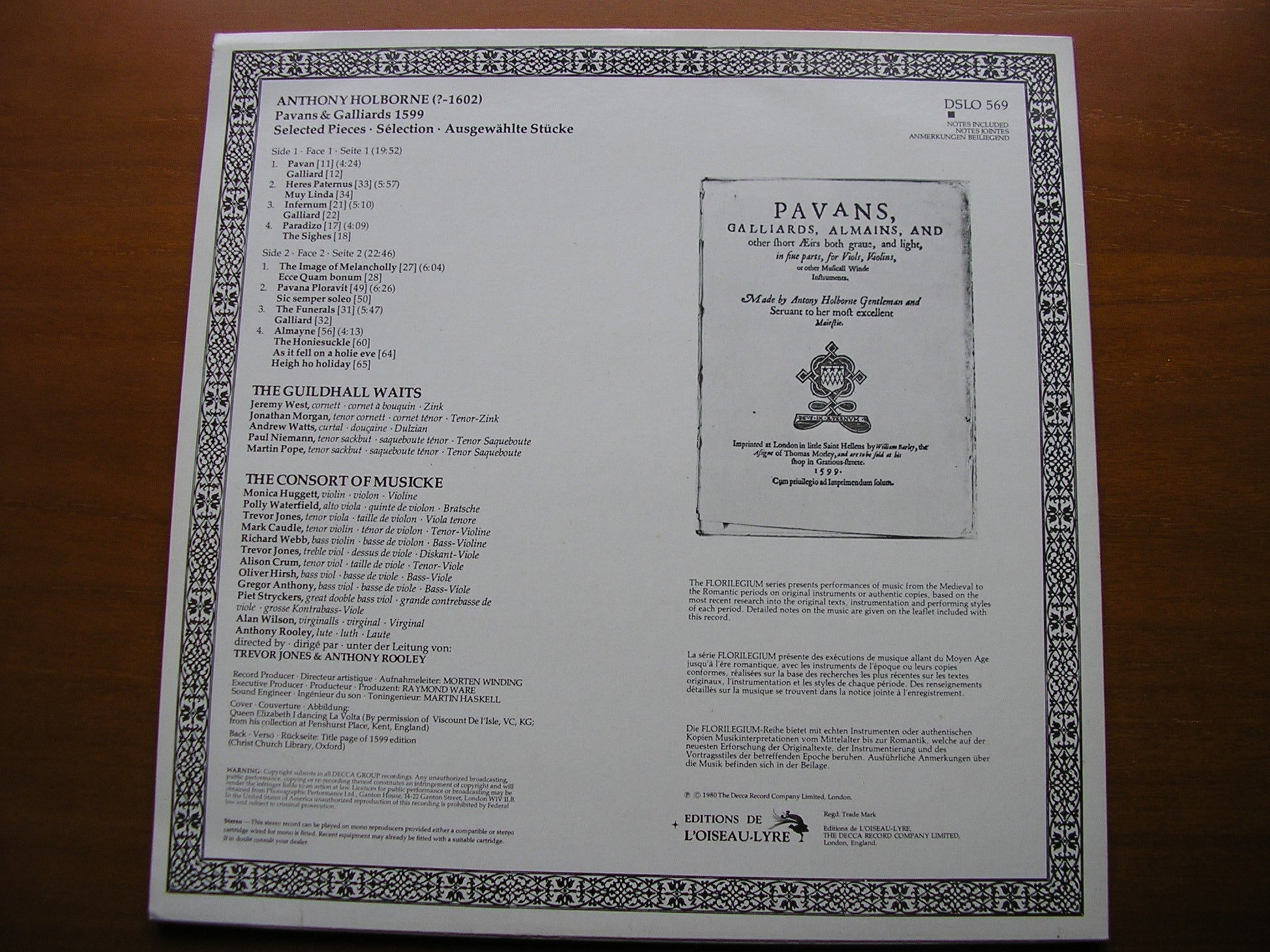 DSLO 569  HOLBORNE: PAVANS & GALLIARDS        THE GUILDHALL WAITS / THE CONSORT OF MUSICKE / TREVOR JONES / ANTHONY ROOLEY