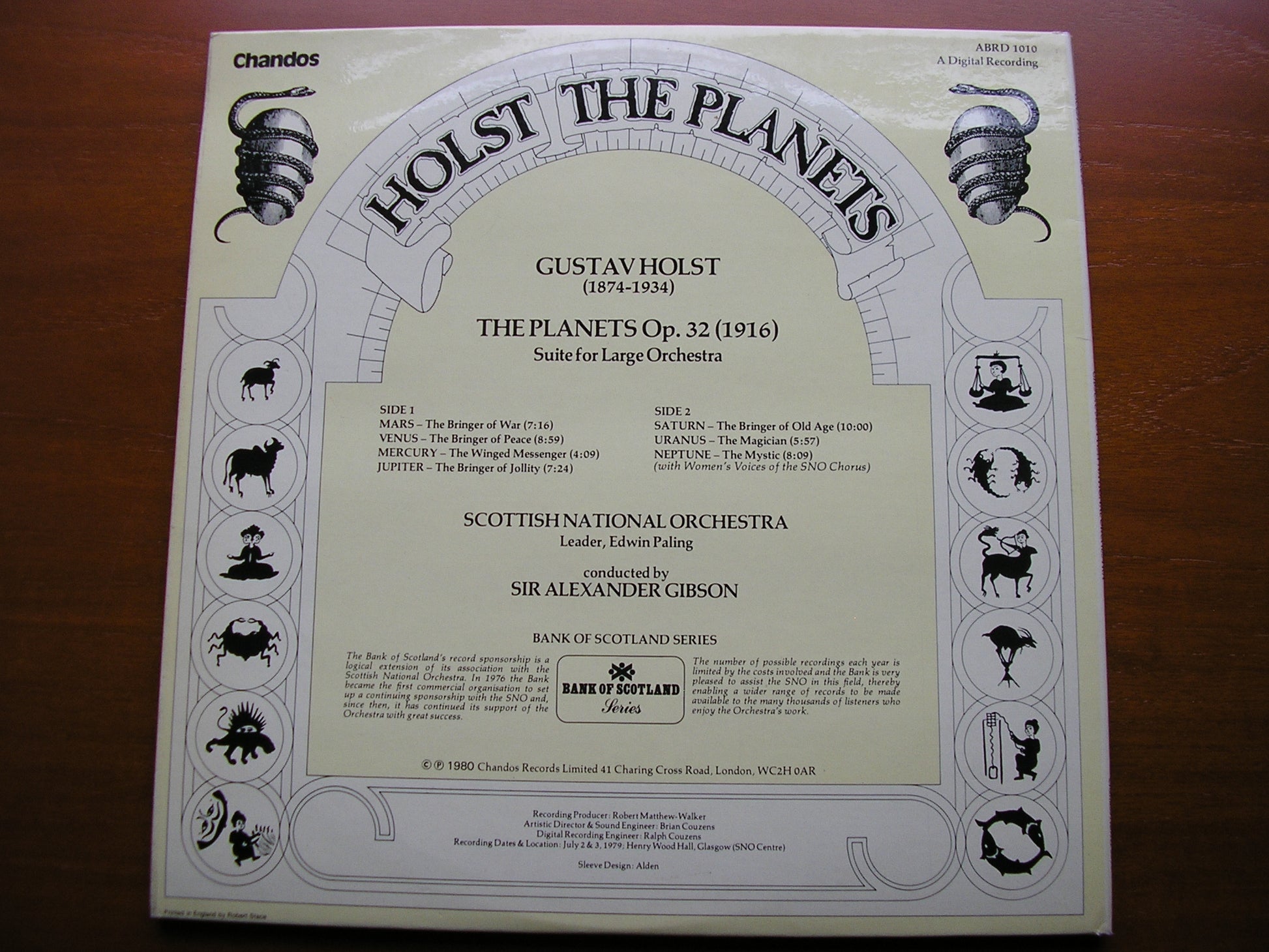 ABRD 1010  HOLST: THE PLANETS   SIR ALEXANDER GIBSON / SCOTTISH NATIONAL ORCHESTRA