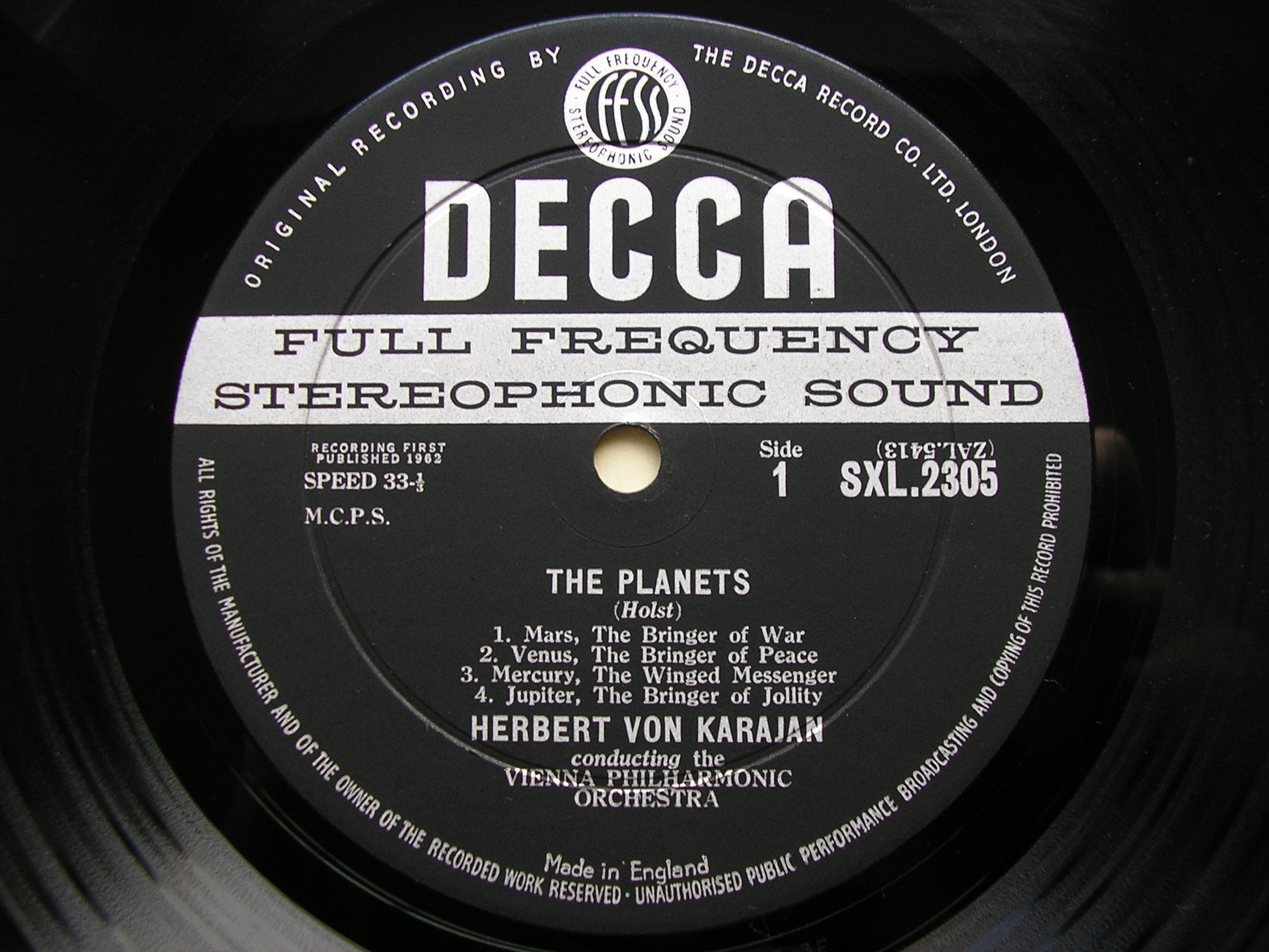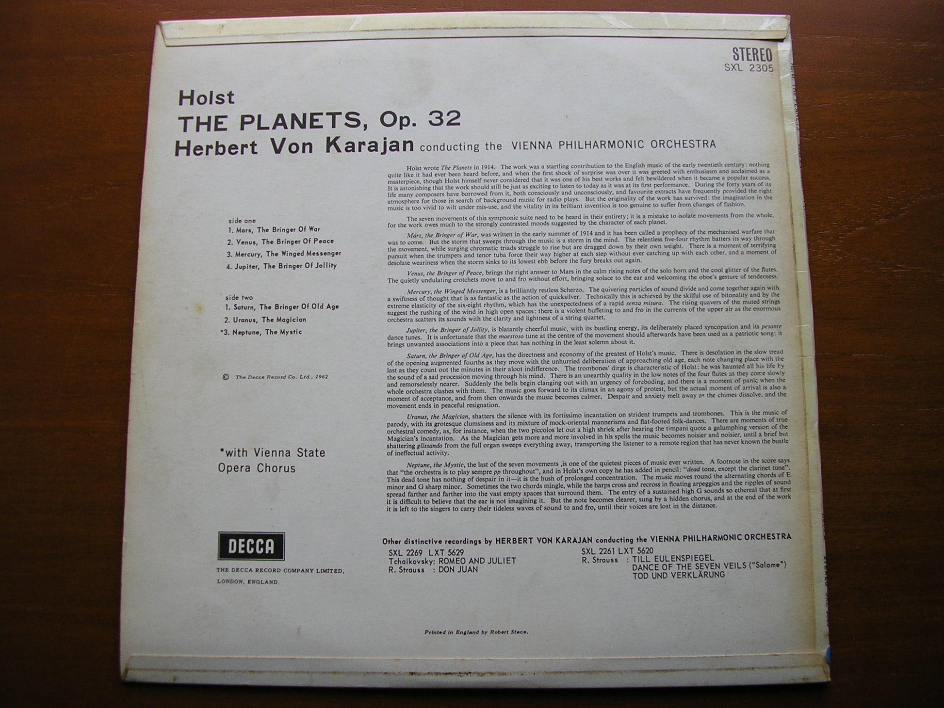 SXL 2305  HOLST: THE PLANETS    HERBERT VON KARAJAN / VIENNA PHILHARMONIC ORCHESTRA