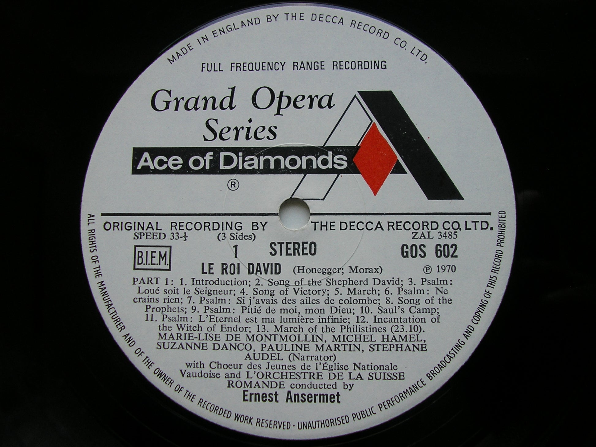 HONEGGER: LE ROI DAVID / RAVEL: SHEHERAZADE / TWO HEBREW SONGS SOLOISTS / SUISSE ROMANDE / ANSERMET 2LP GOS 602 / 3