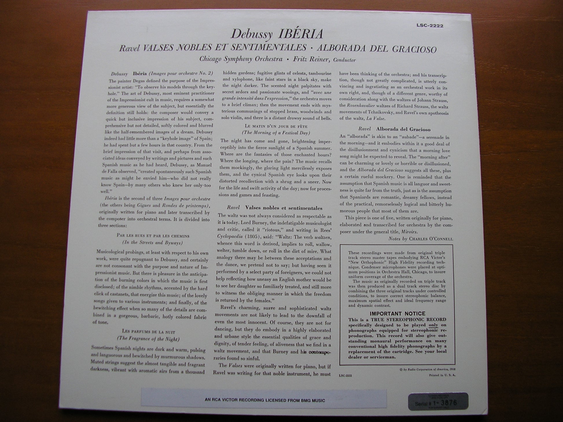 LSC 2222  DEBUSSY: IBERIA / RAVEL: ALBORADO DEL GRACIOSO / VALSES NOBLES ET SENTIMENTALES        FRITZ REINER / CHICAGO SYMPHONY ORCHESTRA